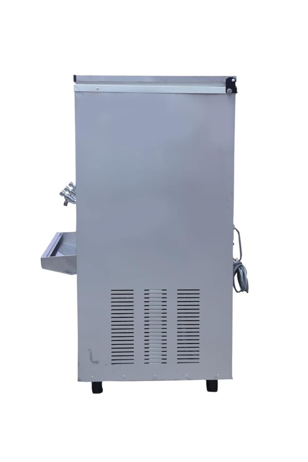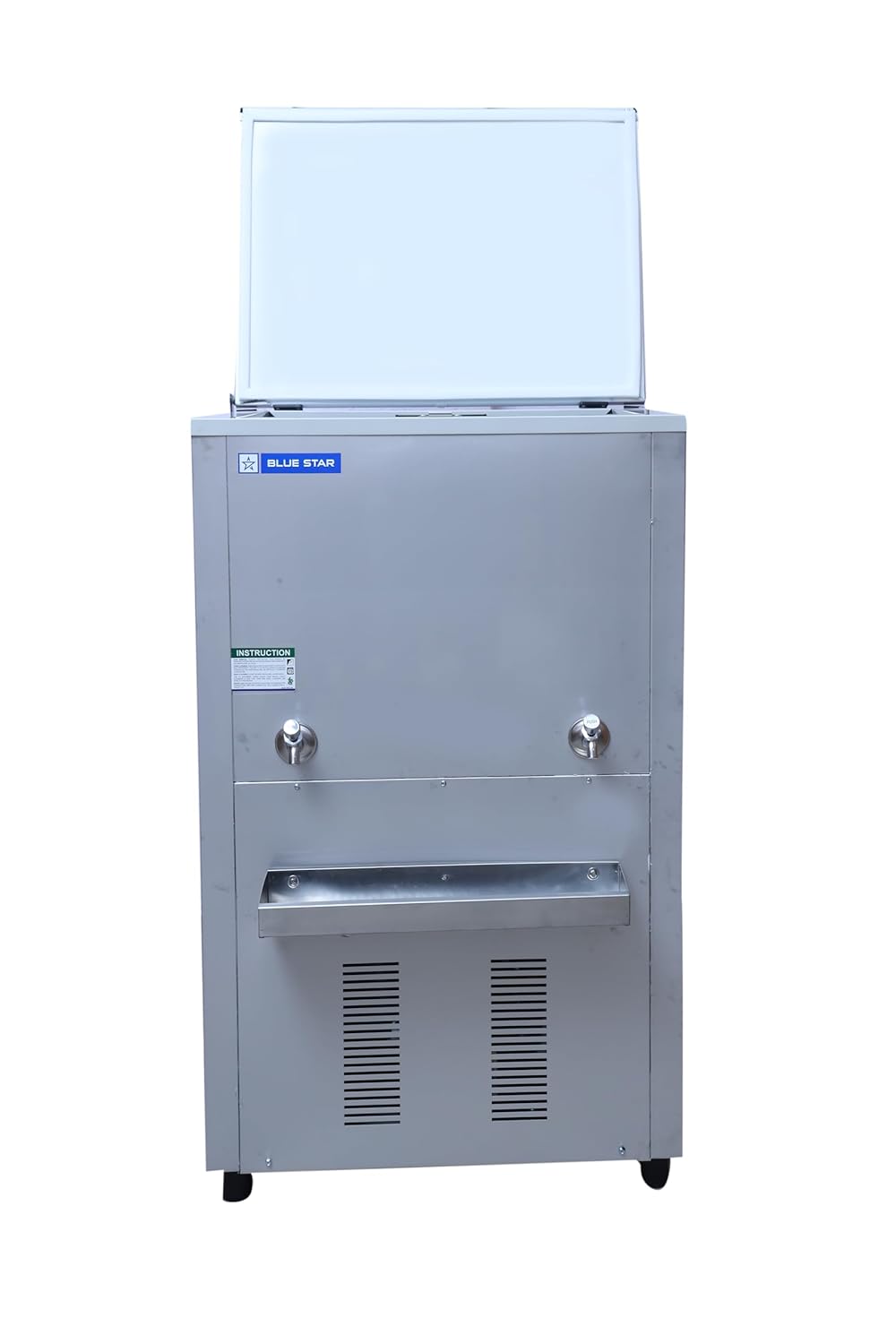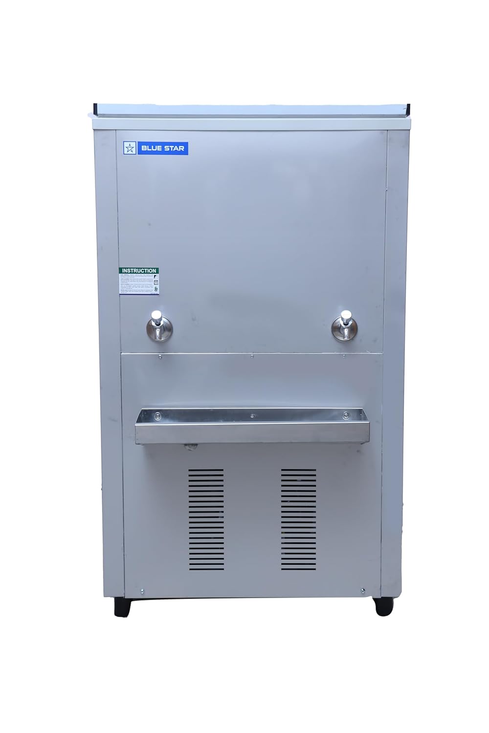 The Blue Star SWC120120SS is a high-performance fully stainless steel water cooler engineered to deliver rapid cooling and high durability in demanding environments. With a storage capacity of 120 liters and a cooling capacity of 120 liters per hour, it dispenses up to 300 glasses of chilled water every hour, making it ideal for offices, schools, factories, hospitals, and other high-footfall areas. Designed with dual cold water taps, it ensures quick and continuous water flow even during peak hours. Its ISI-marked all-steel body not only ensures hygiene but also provides long-lasting resistance against corrosion and wear. Powered by an energy-efficient system, it uses R22 refrigerant and operates on a 230V single-phase power supply, consuming just 7.5 / 5.3 Amps. Compact yet powerful, the unit fits comfortably in any commercial setting with dimensions of 790 x 589 x 1235 mm. Backed by a 1-year comprehensive warranty, this cooler also includes an installation manual and proudly bears the Made in India label.