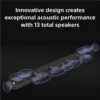 Features 11 speaker units with dedicated front, center, and up-firing channels.