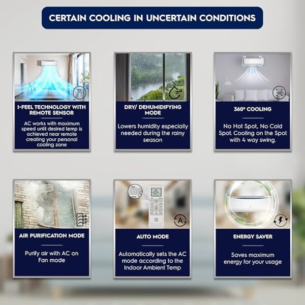 | Included Components | 1 Indoor Unit, 1 Outdoor Unit, 1 Remote Control, User Manual, Warranty Card & 3.5m Copper Wire/3m Interconnecting Pipe |