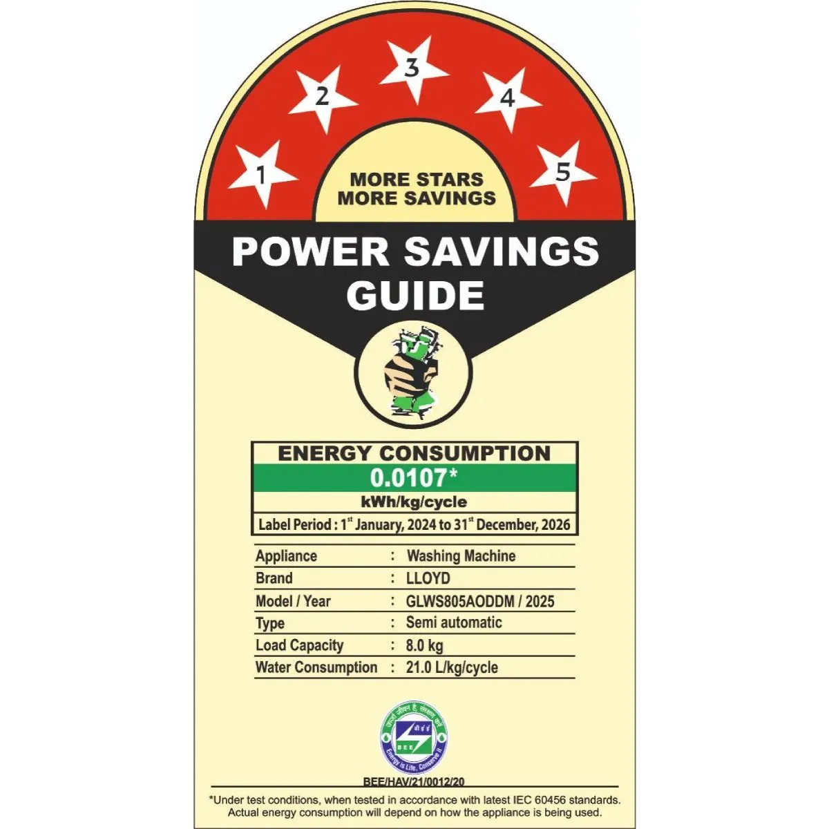 Havells-Lloyd 8 Kg 5 Star Aria Semi-Automatic Top Load Washing Machine With Swift Dry -Detergent Dock -Aqua Balancer,(GLWS805AODDM, Dark Maroon)