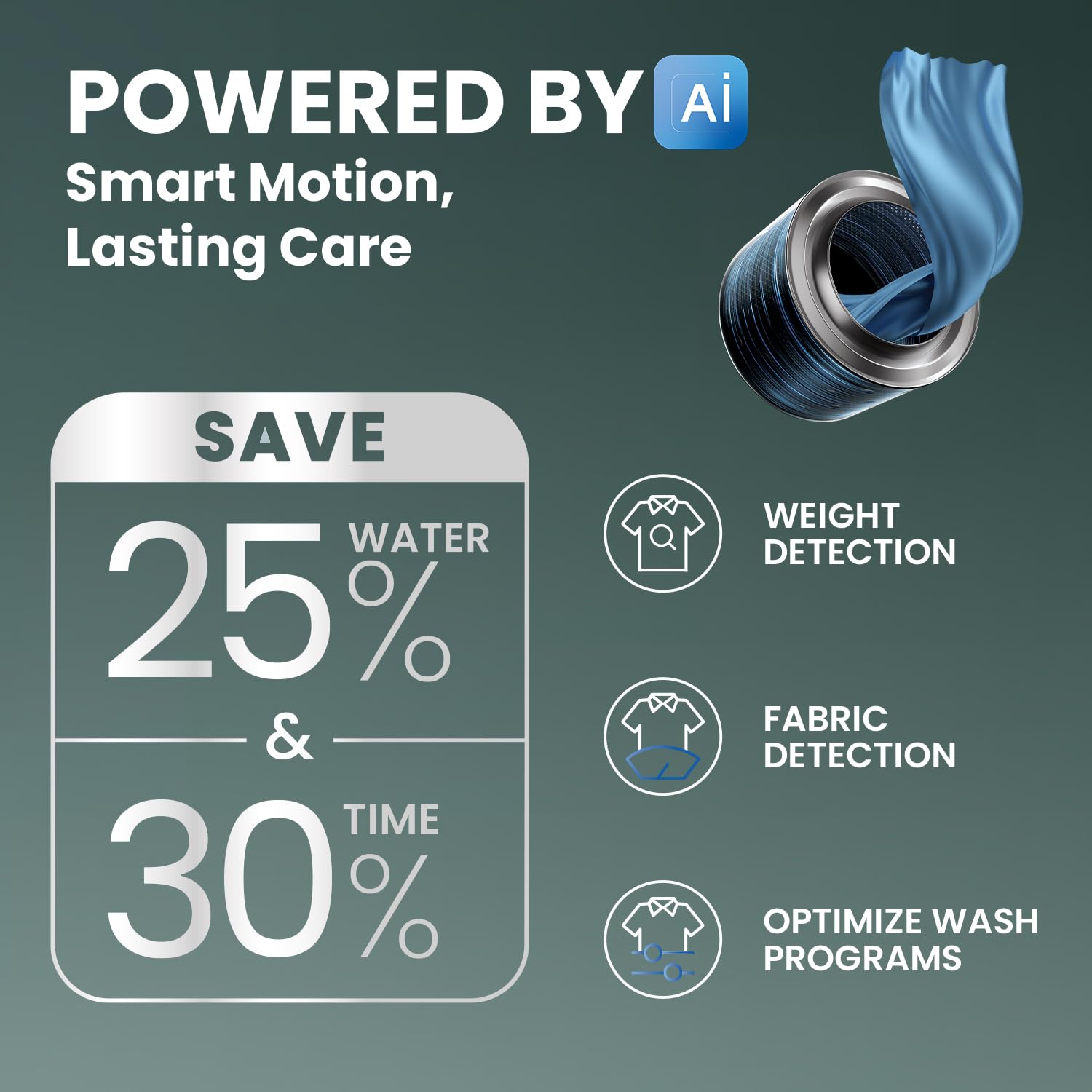 | Additional Features | 9 Swirl Wash (Mimic Handwashing), Ai DOS (Auto Detergent Dispenser), Aqua Energie (Treats hard water), Auto-Load Sensing, Eco Inverter, Oxyjet®, Power Steam®, Steam Refresh (Rejuvenates clothes, no detergent, no water required), Warm Soak (Soaks in warm water, loosens dirt, fights stains), WiFi / Voice Enabled |