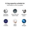 • Capacity 6.5 kg :suitable for bachelors & couples