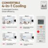 • Capacity: 1.5 Ton – Suitable for medium sized rooms (111 to 150 sq.ft); Air Circulation: 459 (Indoor) CFM, Cooling Capacity: 4700 W (2,020~5,000 (50%~ 100%)) & Ambient Temperature: 54 degree Celsius with 4 way air swing (Manual)