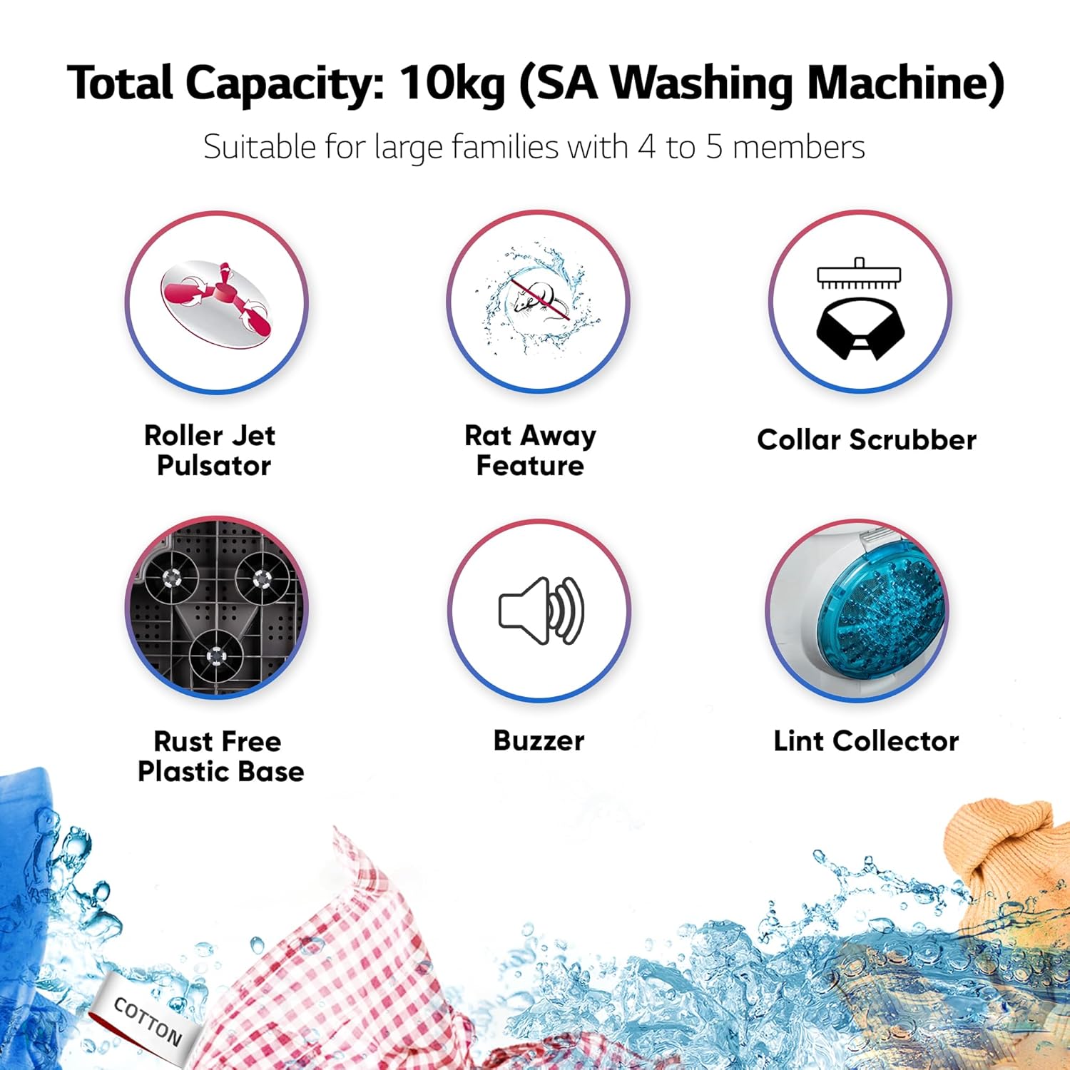 LG 10 kg 5 Star Semi-Automatic Top Load Washing Machine Appliance (P1040RGAZ, Dark Gray, Roller Jet Pulsator)