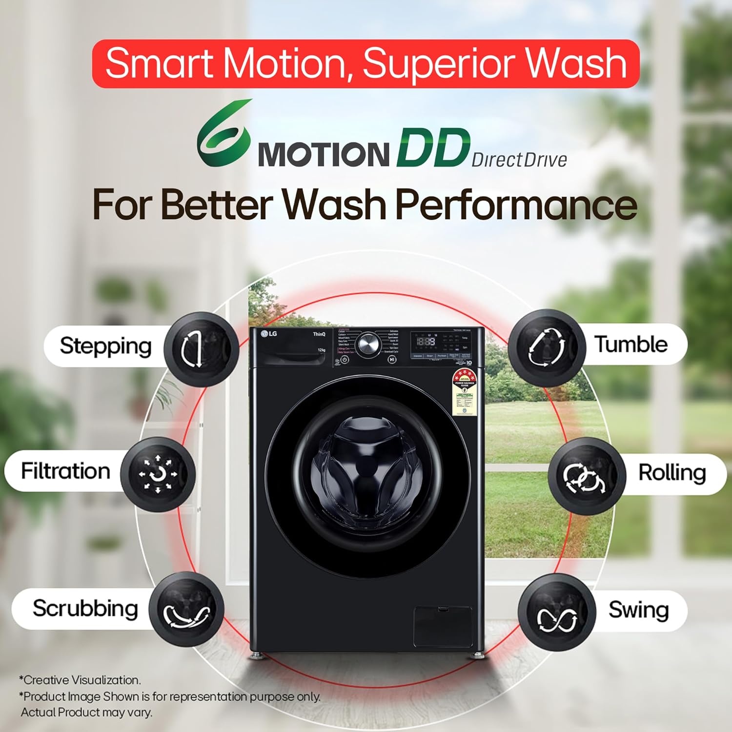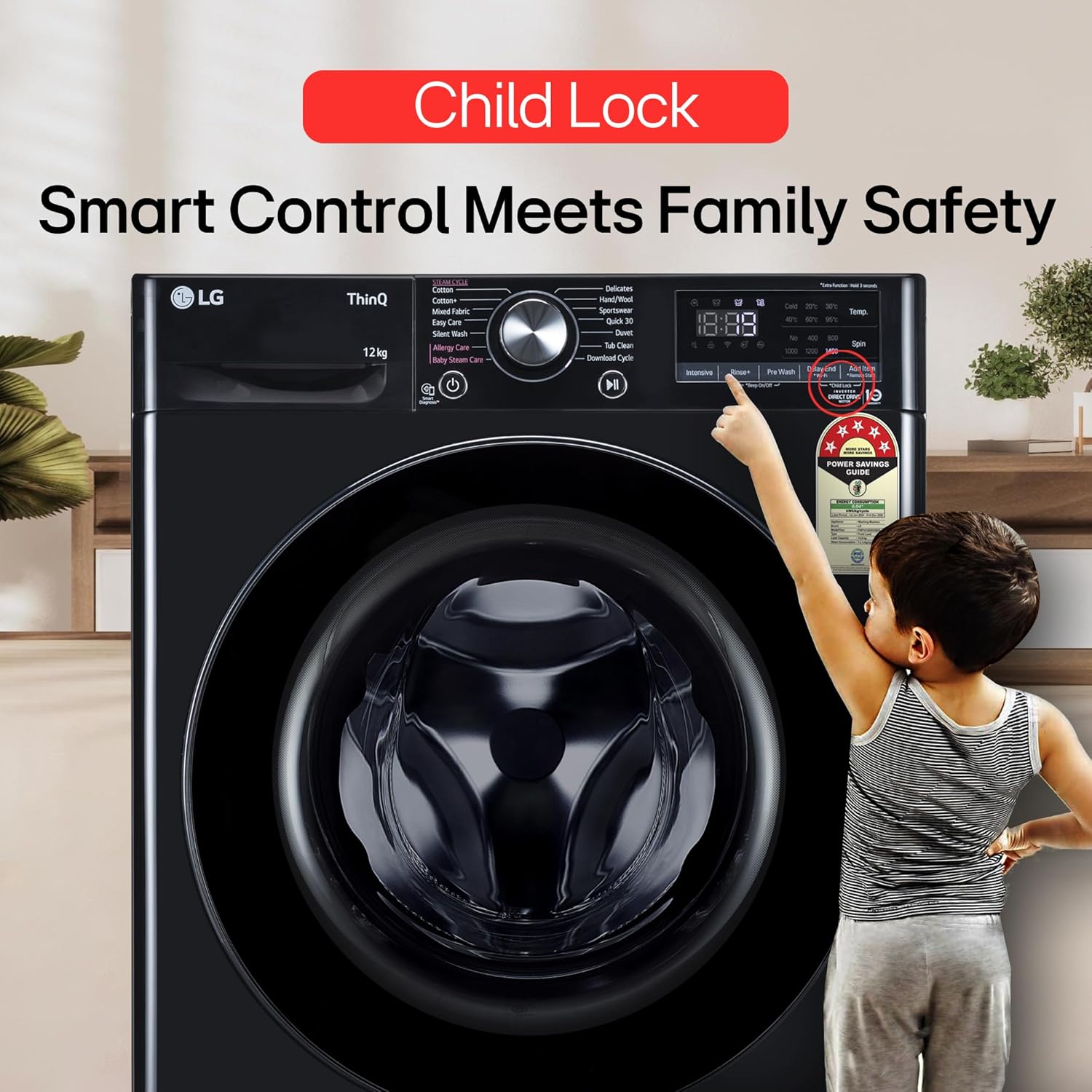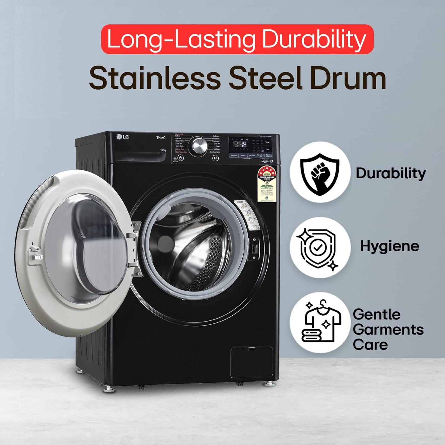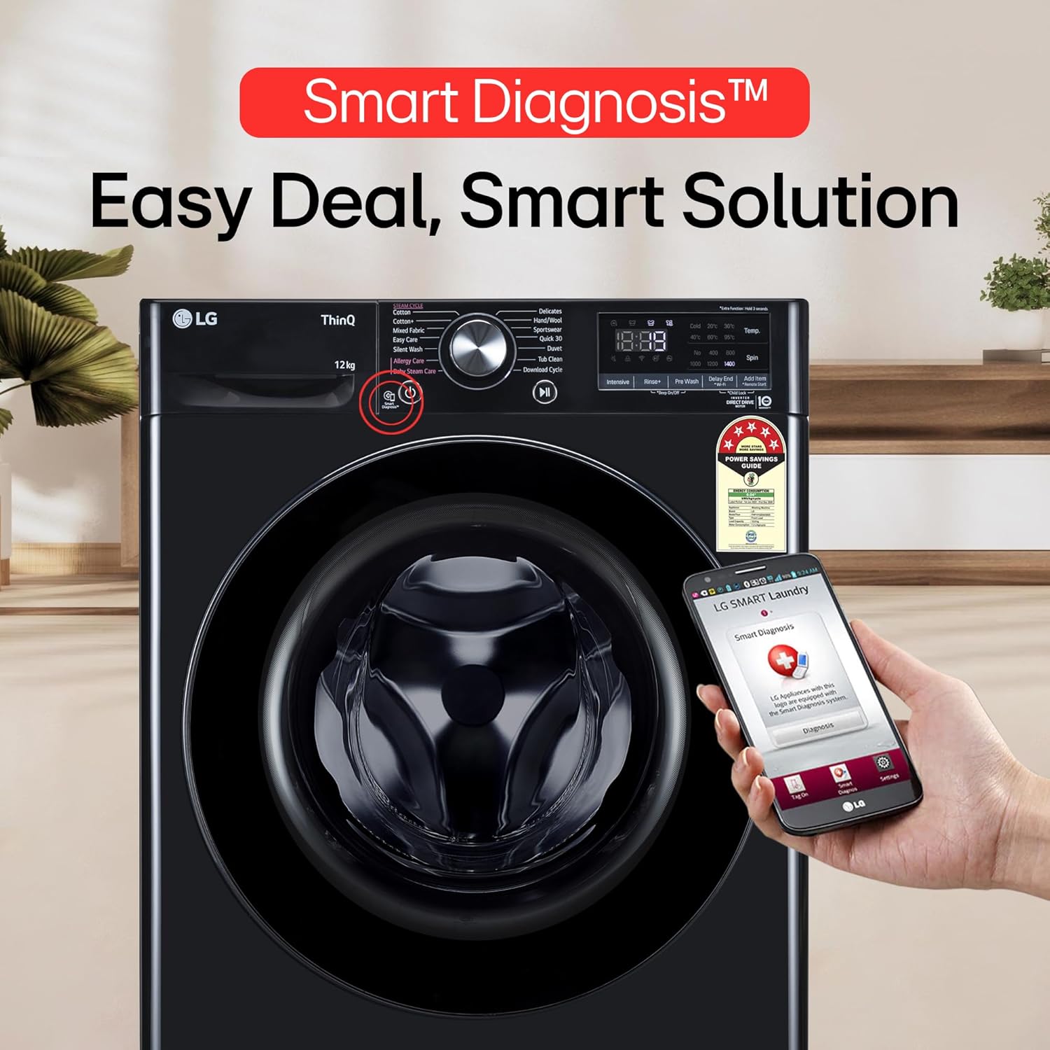 LG 12 Kg, 5 Star, AI Direct Drive Technology, Wi-Fi, Steam Fully Automatic Front-Loading Washing Machine (FHP1412Z5O, Intelligent & Convenient Fabric Care, Allergy Care, Remote Control, Onyx Black)