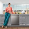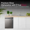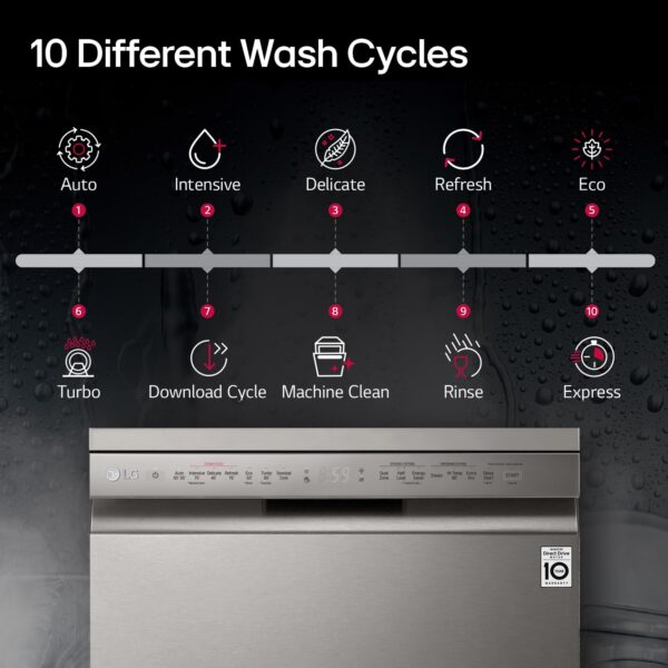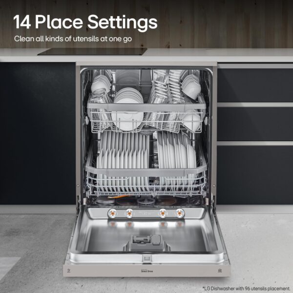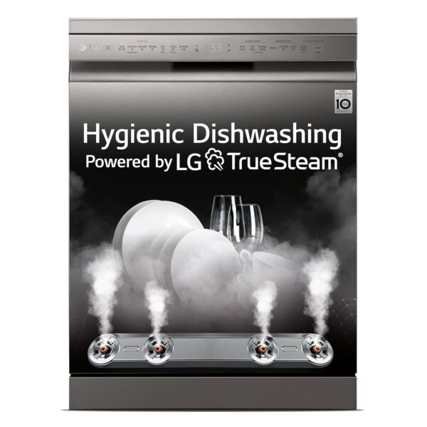 The LG DFB424FP Dishwasher offers with high temperature steam, which consists of tiny particles, easily separate stains from dishes. With the help of Multi-Motion spray arms and high-pressure jets, Quad Wash provides maximum coverage to get things clean the first time. Comes with the 14 place setting feature that lets you clean various kinds of utensils at one go. It comes with Inverter Direct Drive Motor. It has True Steam, Quad Wash, Dual Wash, Quite, Turbo, Auto, Eco, Gentle, Quick wash programs.