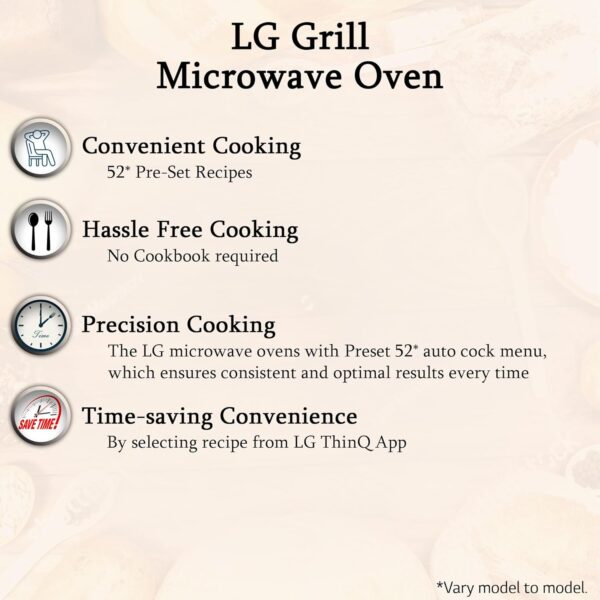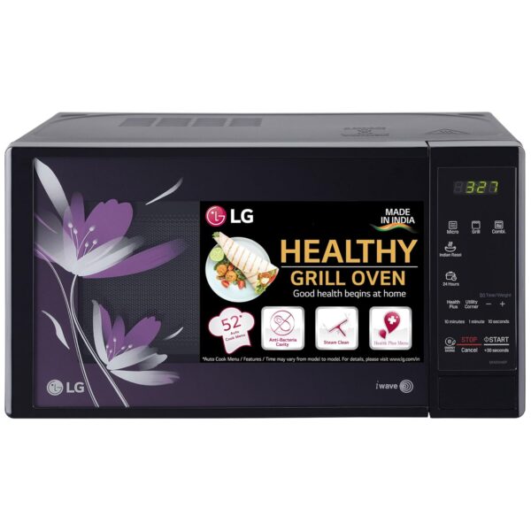 Bring home the LG 21 L Grill Microwave Oven (MH2044BP, Black) to prepare healthy meals quickly with minimal effort. This kitchen appliance features LG i-wave technology for fast and even cooking, a 52 AutoCook Menu to make Indian dishes, and a Quartz Heater to quick heat up and safety.