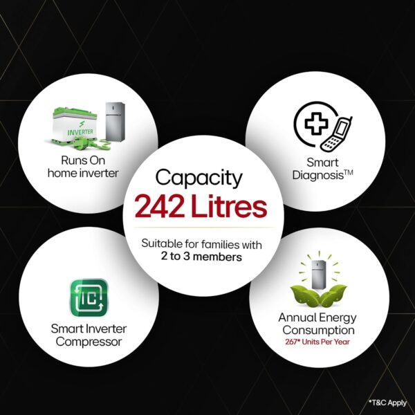 | Additional Features | Smart Inverter Compressor, Multi Air Flow, Moist N Fresh, Auto Smart Connect, Smart Diagnosis |