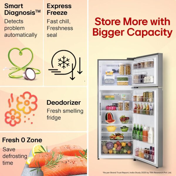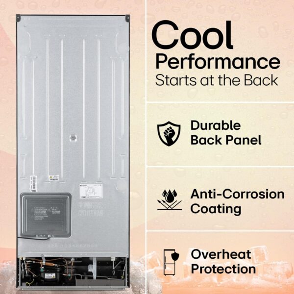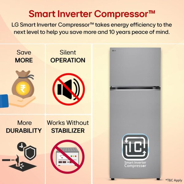 • Smart Inverter Compressor: Delivers silent, efficient performance with better energy savings. Its advanced cooling ensure faster, more effective defrosting for lasting freshness