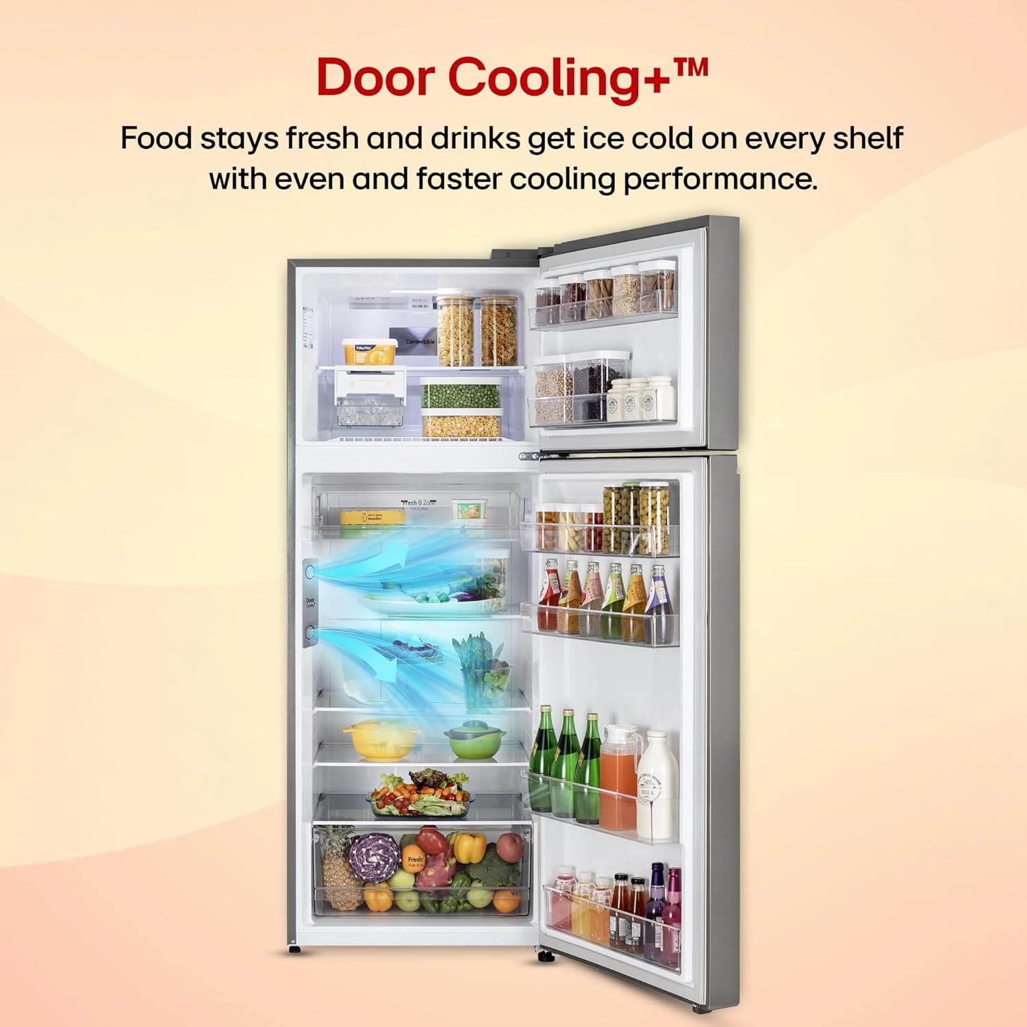 • Experience ultimate freshness with LG Frost-Free Double Door Refrigerators greater than 300 L: featuring advanced cooling technology, energy efficiency, and spacious storage for your all needs; Auto defrost function to prevent ice-build up