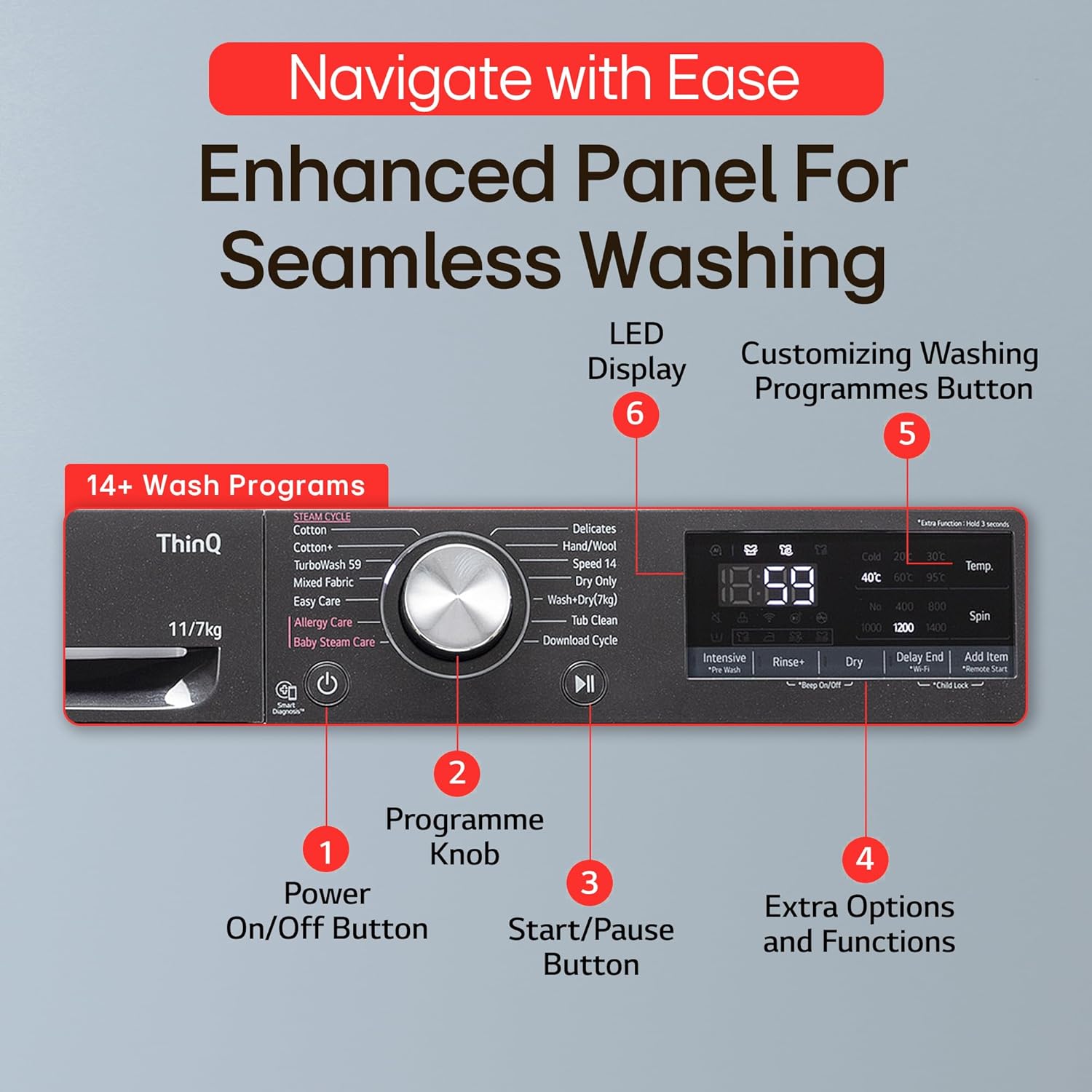 | Cycle Options | Baby Steam Care, Delicates, Tub Clean, Cotton, Cotton+, Easy Care, Allergy Care, Hand/Wool, Speed 14, Dry Only, Wash + Dry (7Kg), TurboWash 59, Mixed Fabric, Download Cycle |