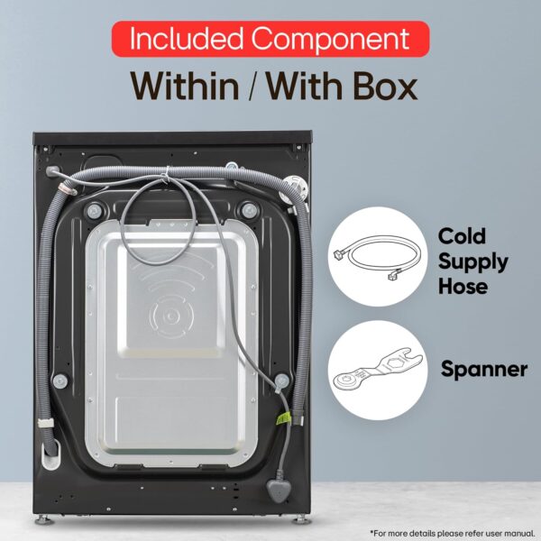 | Included Components | Brand warranty can be availed using amazon invoice and user manual can be accessed from brand website, Fill Hose, Owner’s Manual, Spanner, Washer & Dryer Unit |