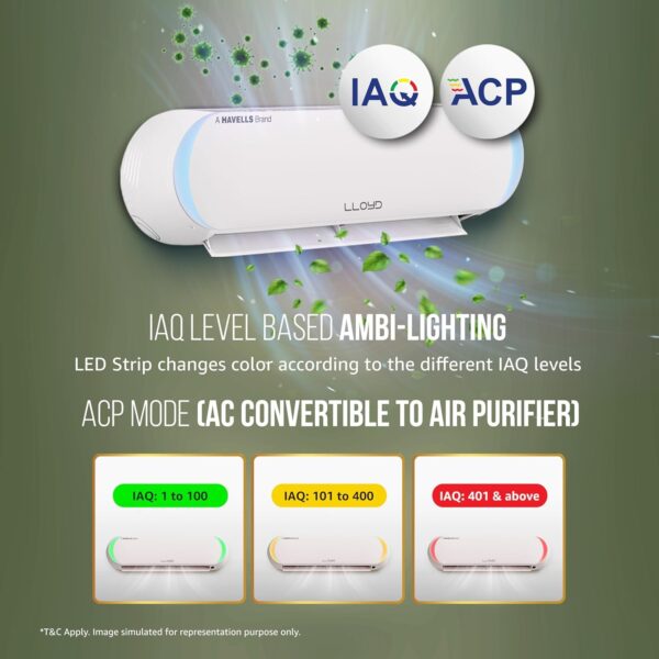 | Special Features | 4 Way Swing, Active Carbon Filter, Low Gas Detection; Clean Filter Indication; Installation Check; Stabilizer Free Operation; Side LED Display, Mood-Lighting; Ambi-Lighting; In-Built Air Purifier; 6 in 1 Expandable; Cools Even @ 60 ˚C;, Real Time IAQ Sensing of PM 2.5 / PM 10; In Built WiFi; Direct Voice Command; Open Door Alert; Protective Earth Alert, Precesion Control Smart 4 Way Swing; Rapid Cooling (18 °C in 45 seconds); Turbo Cool; 100% Copper; Voltage Fluctuation Alert, Air Purification Filter, Premium Remote Handset; I-Feel Sensor & Motion Based Sensor. |