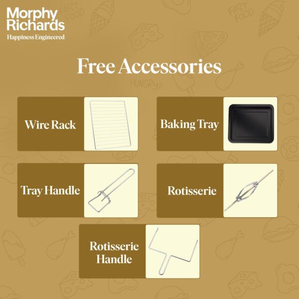 | Included Components | Instruction Manual, OTG, Wire Grill, Baking Tray, Tong for baking tray/ wire grill, Tong for rotisserie rod, Rotisserie rod with fork, Warranty Card | ||||||||||||||||||||||||