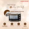 Included Components | One Unit, Instruction manual, Warranty card, skewer, rotisserie, grill rack, bake tray, crumb tray, rotisserie tong, grill and bake tong, rotisserie skewer |