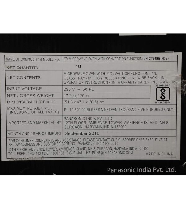 Be the first to review “Panasonic 27L Microwave Conventional Oven(NN-CT64HBFDG, Black Mirror + Golden , Zero Oil), Free 1 Year Extended Warranty”