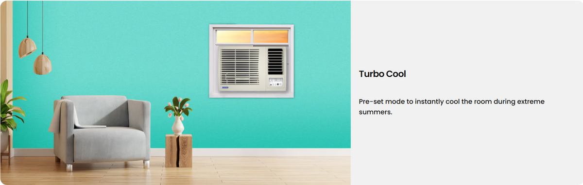 The Blue Star WFE309L 0.8 Ton 3 Star Fixed Speed Window Air Conditioner is a compact and efficient cooling solution designed for small rooms and personal spaces. Powered by a fixed speed rotary compressor and a high-quality copper condenser, this window AC delivers fast and consistent cooling with reliable performance. The Turbo Cool mode ensures quick temperature drop during hot days, while the window-mounted design makes installation simple and space-saving.