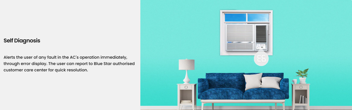 Built for long-term durability, this window AC features a 100% copper condenser with Hydrophilic Blue Fins, offering excellent heat exchange and protection against corrosion. The integrated dust filter helps maintain cleaner indoor air, and the self-diagnosis feature simplifies maintenance by quickly identifying operational issues. With quiet operation, multiple fan speed options, and trusted Blue Star engineering, the WIE518L combines efficiency, performance, and reliability in a single, space-saving solution.