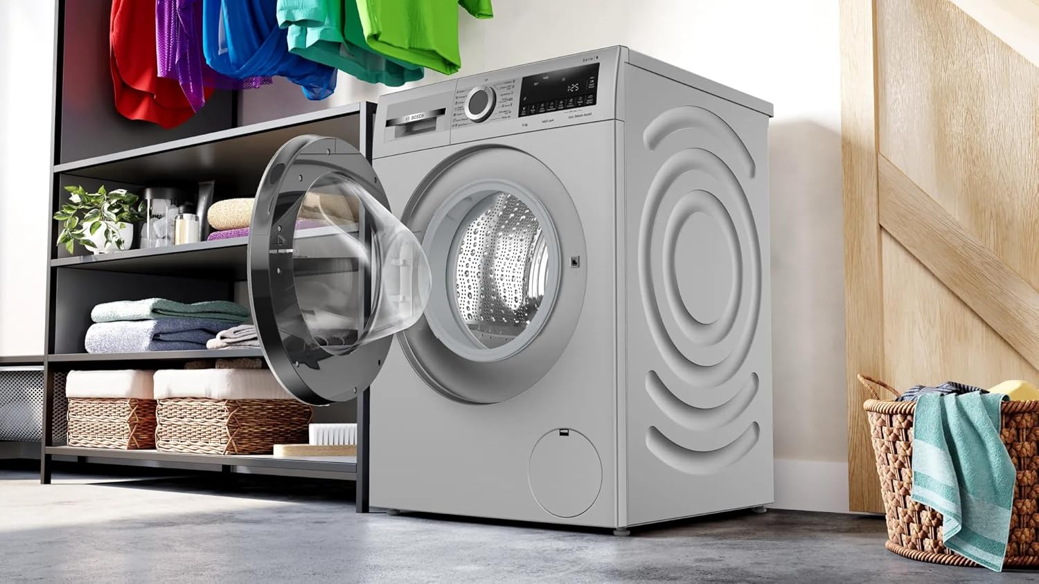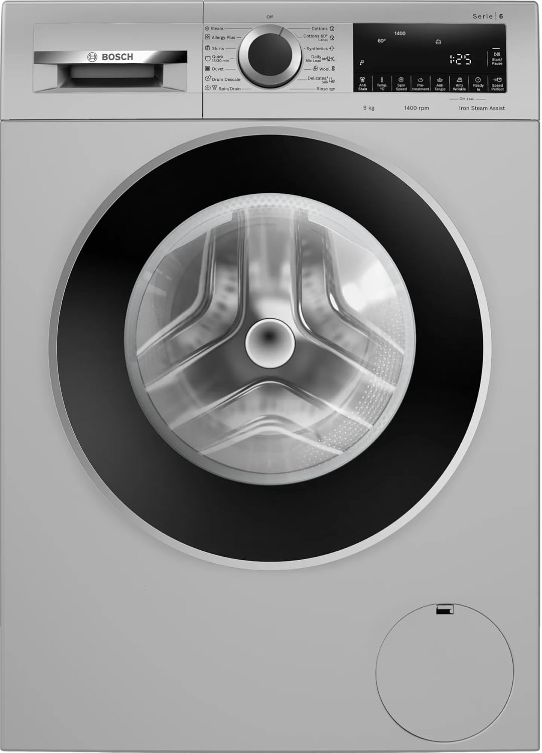 The Bosch 9 Kg 5 Star Series 6 Fully Automatic Front Load Washing Machine (WGA244ZSIN, Silver) is designed to deliver powerful stain removal, fabric care, and energy efficiency for modern households. With a 9 kg capacity, it is ideal for medium to large families, easily handling heavy and bulky laundry loads. The advanced AntiStain technology effectively removes up to four stubborn stains such as oil, tea, cosmetics, and blood—without any manual pre-treatment—ensuring spotless results every time.