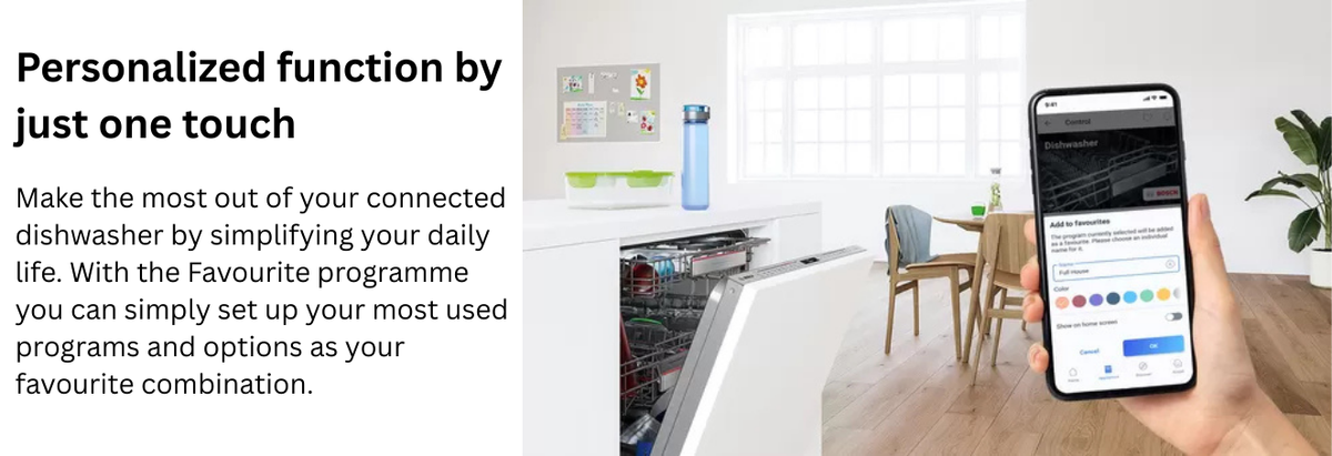 Powered by the advanced EcoSilence Drive motor, this dishwasher operates quietly while ensuring long-lasting performance. The Wi-Fi enabled Home Connect feature allows you to control and monitor wash cycles remotely from your smartphone. With 6 wash programs and 4 wash options, including HygienePlus and ExtraDry, it ensures deep cleaning, effective bacteria removal, and superior drying—even for plastic utensils. The Flexible Rack System provides maximum loading flexibility, while AquaStop leak protection offers 24×7 safety. Using just 9.5 litres of water per cycle, this Bosch dishwasher saves water, time, and effort compared to manual washing.