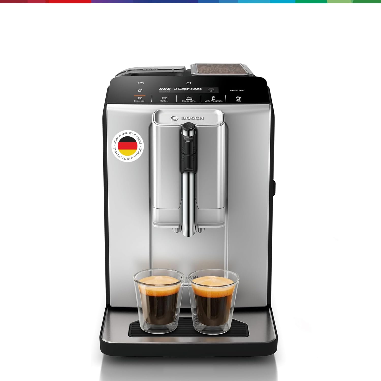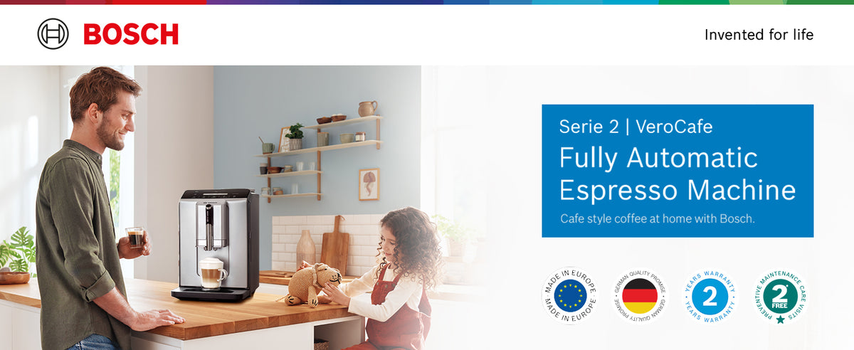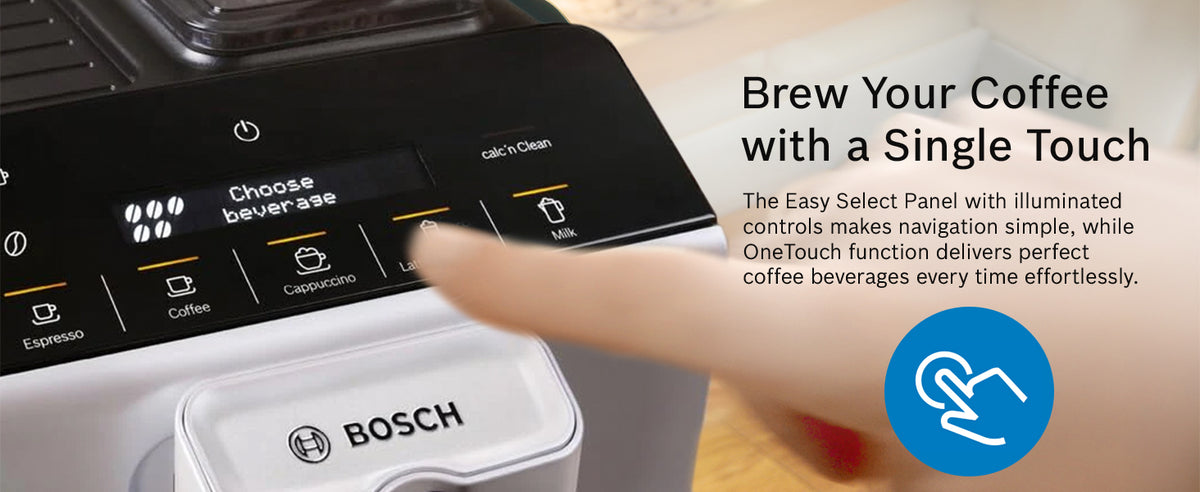 The Bosch VeroCafe Series 2 Fully Automatic Espresso Machine (Silk Silver) is designed to deliver café-style coffee at home with ease and precision. Featuring OneTouch Function, this machine lets you prepare a wide range of espresso-based drinks—such as espresso and cappuccino—at the touch of a single button. Its sleek Silk Silver finish adds a modern, premium look to your kitchen while offering reliable Bosch performance.
