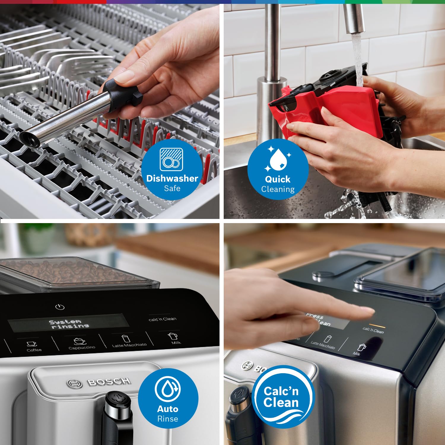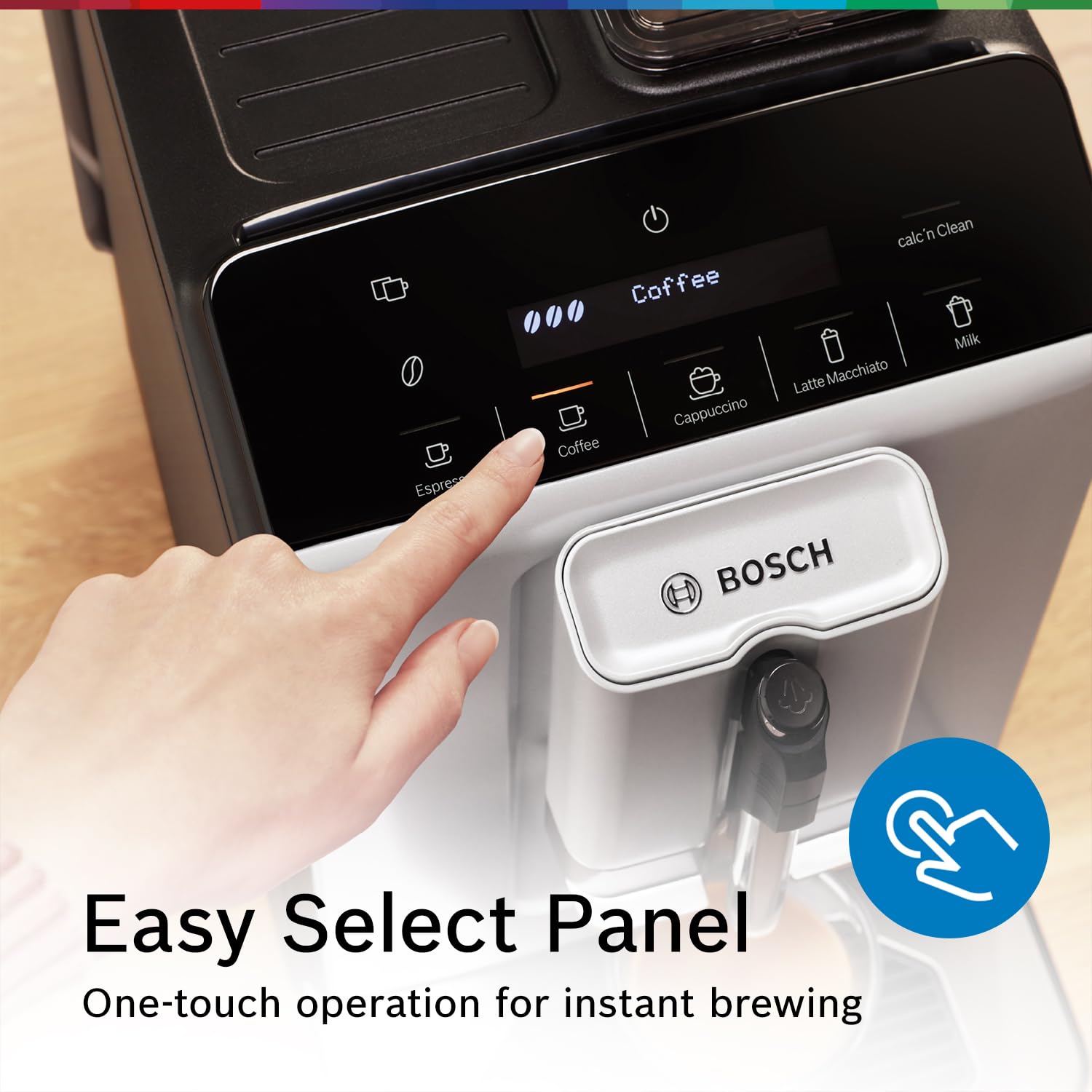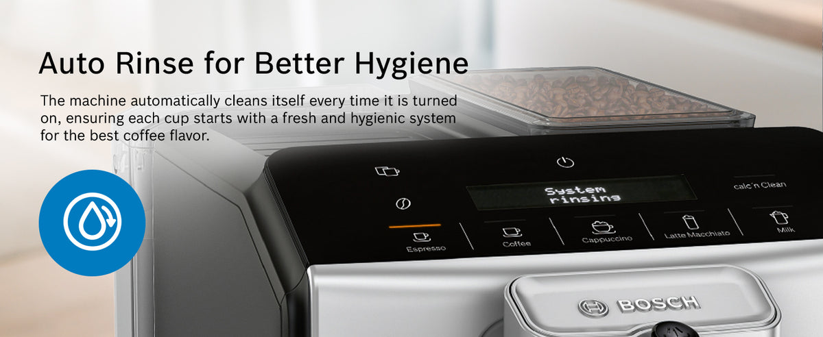Equipped with MilkMagic Pro technology, this coffee machine makes frothing milk effortless—simply pour milk into a cup and let the machine do the rest. The Easy Select control panel ensures intuitive operation, while advanced brewing technology guarantees consistently rich flavor and aroma in every cup. With Calc’n Clean, the machine guides you step-by-step through descaling and cleaning, ensuring optimal hygiene, long-lasting performance, and consistently great-tasting coffee.
