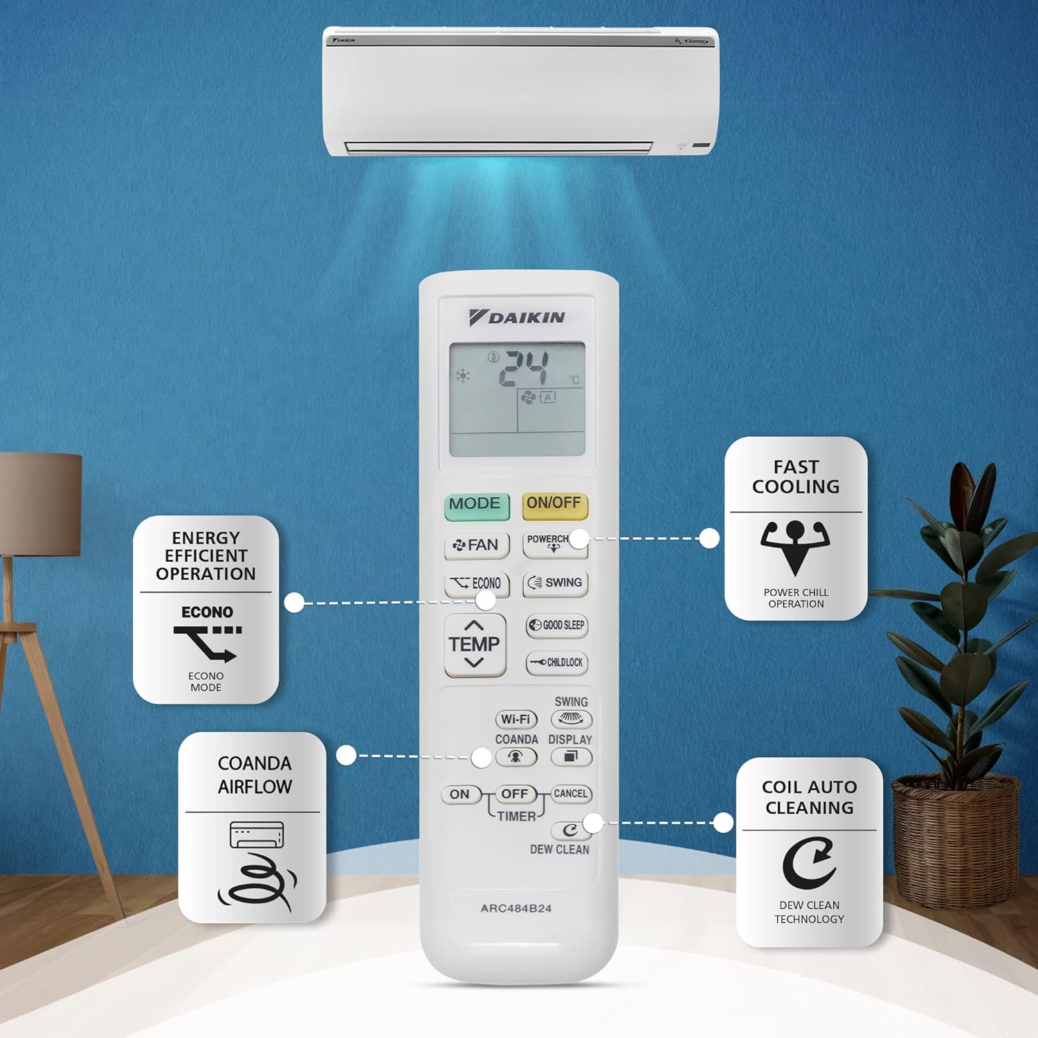 Equipped with a high-performance rotary scroll inverter compressor, this AC automatically adjusts cooling output to maintain consistent temperature and reduce power usage. Its advanced features include Patented Streamer Discharge technology, PM 1.0 filter, Dew Clean Technology, Intelligent Eye sensor, and Air Purification Filter, ensuring cleaner and healthier indoor air. With quiet operation at just 38 dB, Turbo Cooling, Triple Display, and Auto Clean function, this Daikin AC delivers premium comfort, durability, and intelligent climate control.