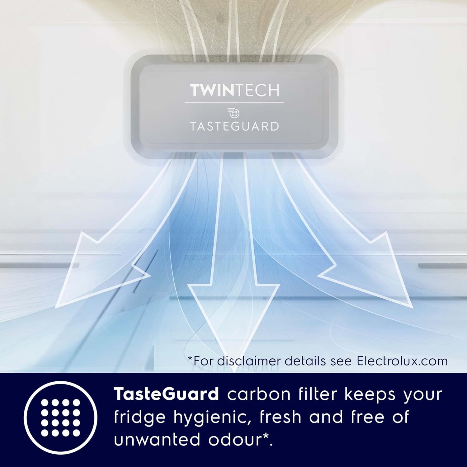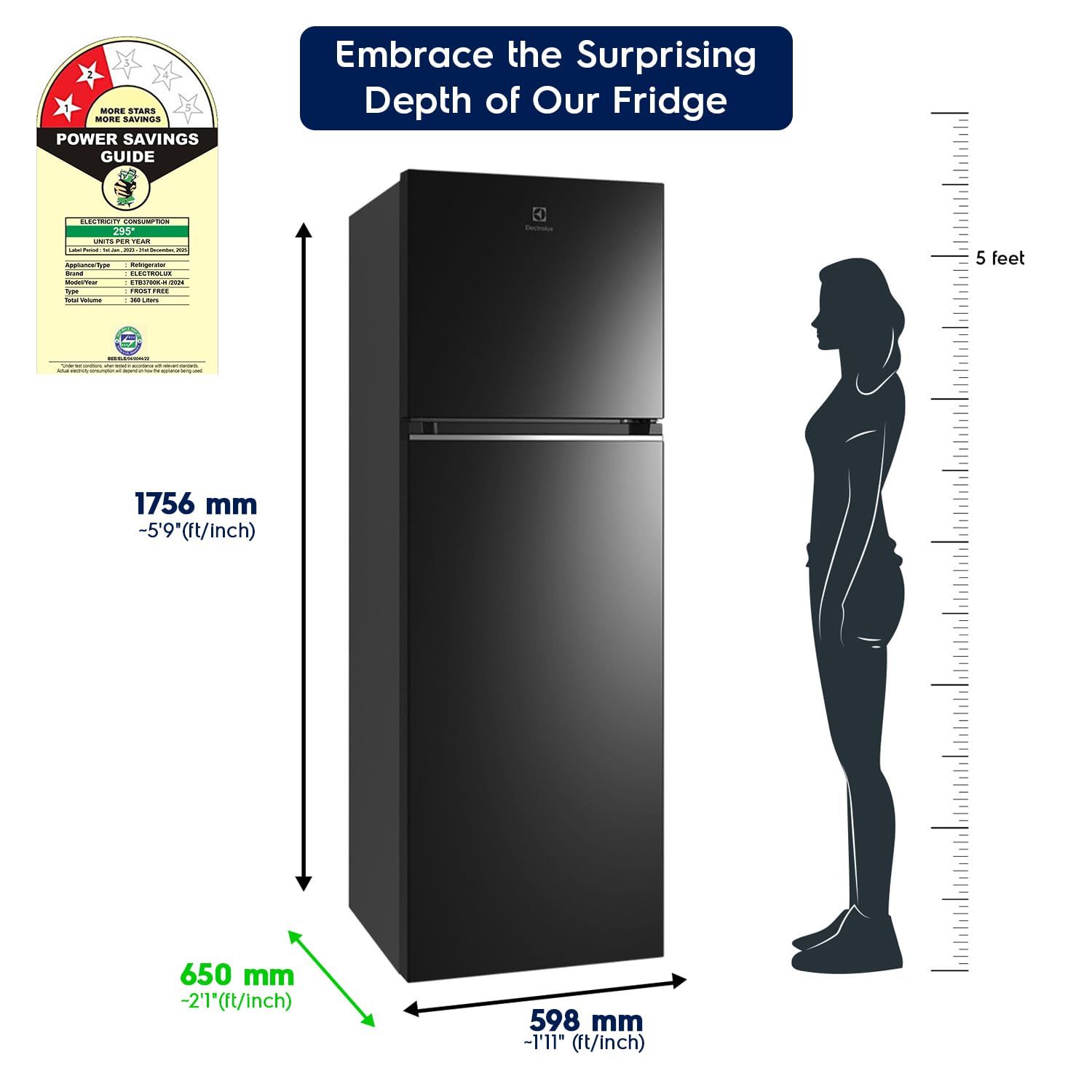 The Electrolux 360L UltimateTaste 300 Bottom Freezer Refrigerator (EBB3702K-H) is designed for households that prioritize convenience, freshness, and contemporary style. Featuring a practical bottom freezer layout, it keeps frequently used fresh food items at eye level for easy access. Finished in elegant black coated steel, this freestanding refrigerator enhances modern kitchen interiors while offering a generous 360L gross capacity (335L net capacity) for everyday storage needs.