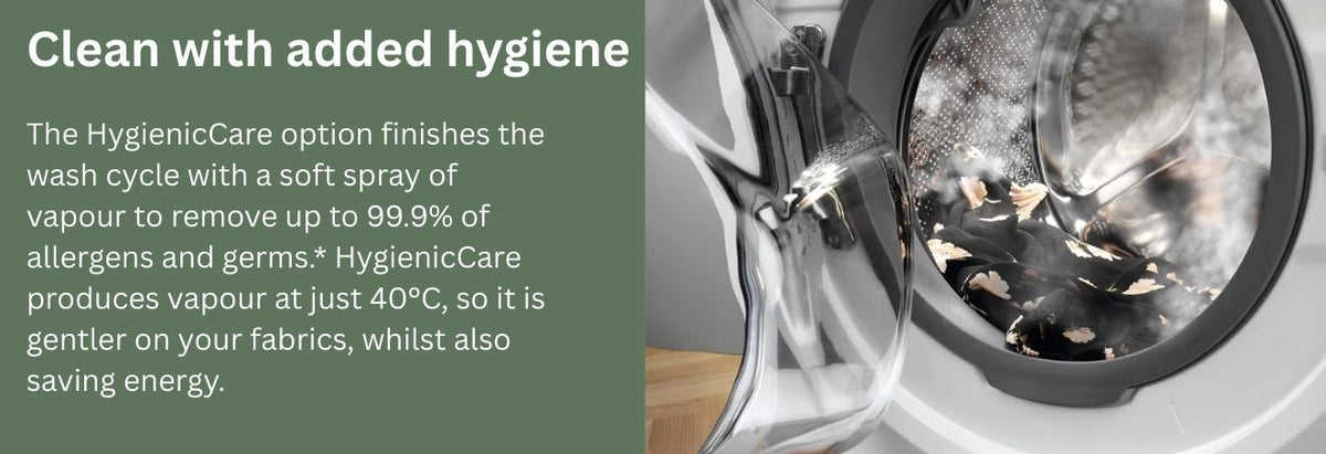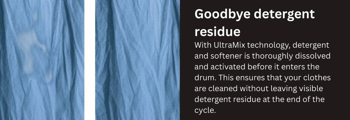 Its advanced UltraMix Technology pre-mixes detergent and water before washing, ensuring no detergent residue on clothes and improved stain removal—even at lower temperatures. The Full Load Vapour Wash (Hygiene Steam) penetrates deep into fabrics to reduce allergens and bacteria, keeping clothes fresh, hygienic, and gentle on skin. Finished in an elegant Dark Silver design, it complements modern interiors while delivering professional-level wash care.