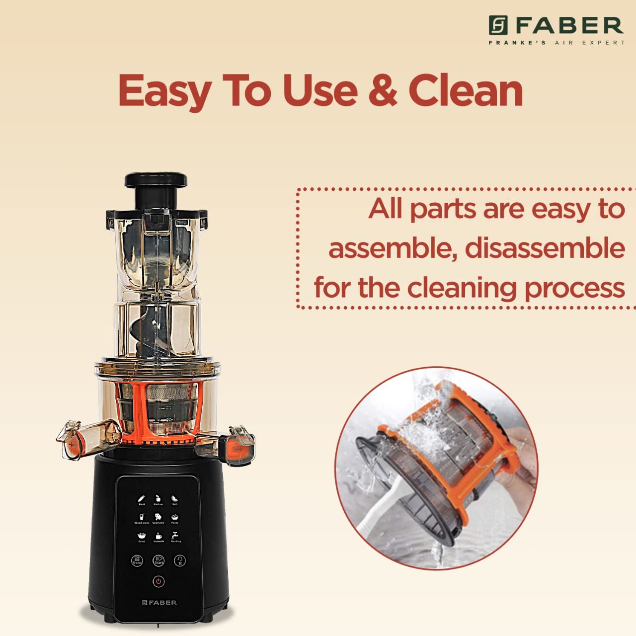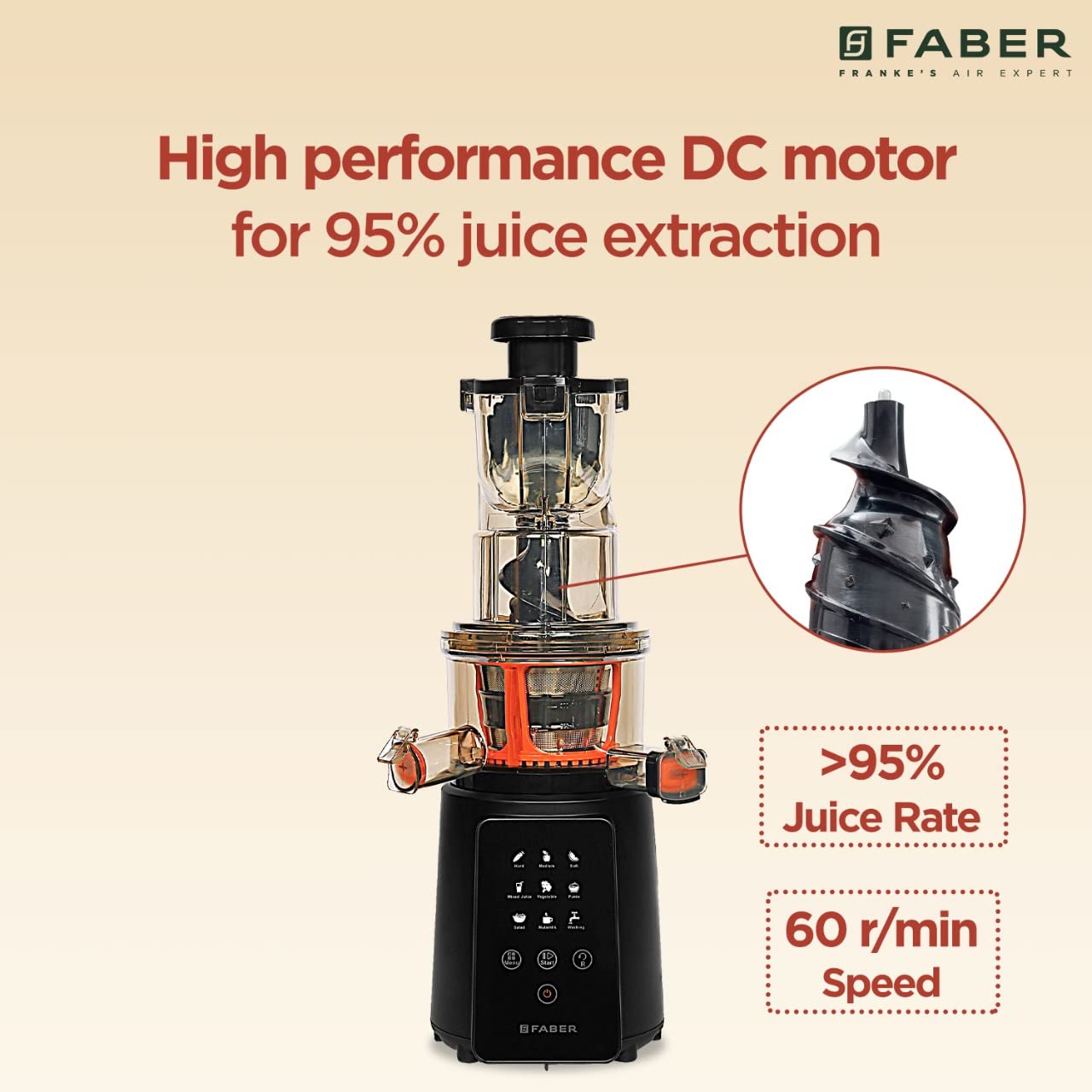 Upgrade your healthy lifestyle with the Faber Cold Press Slow Juicer + Salad Maker FSJ 200 BK-M. Powered by a high-performance motor (200W class) with 60 RPM low-speed extraction, this juicer gently squeezes fruits and vegetables to preserve essential nutrients, vitamins, and enzymes for fresher, healthier juice.