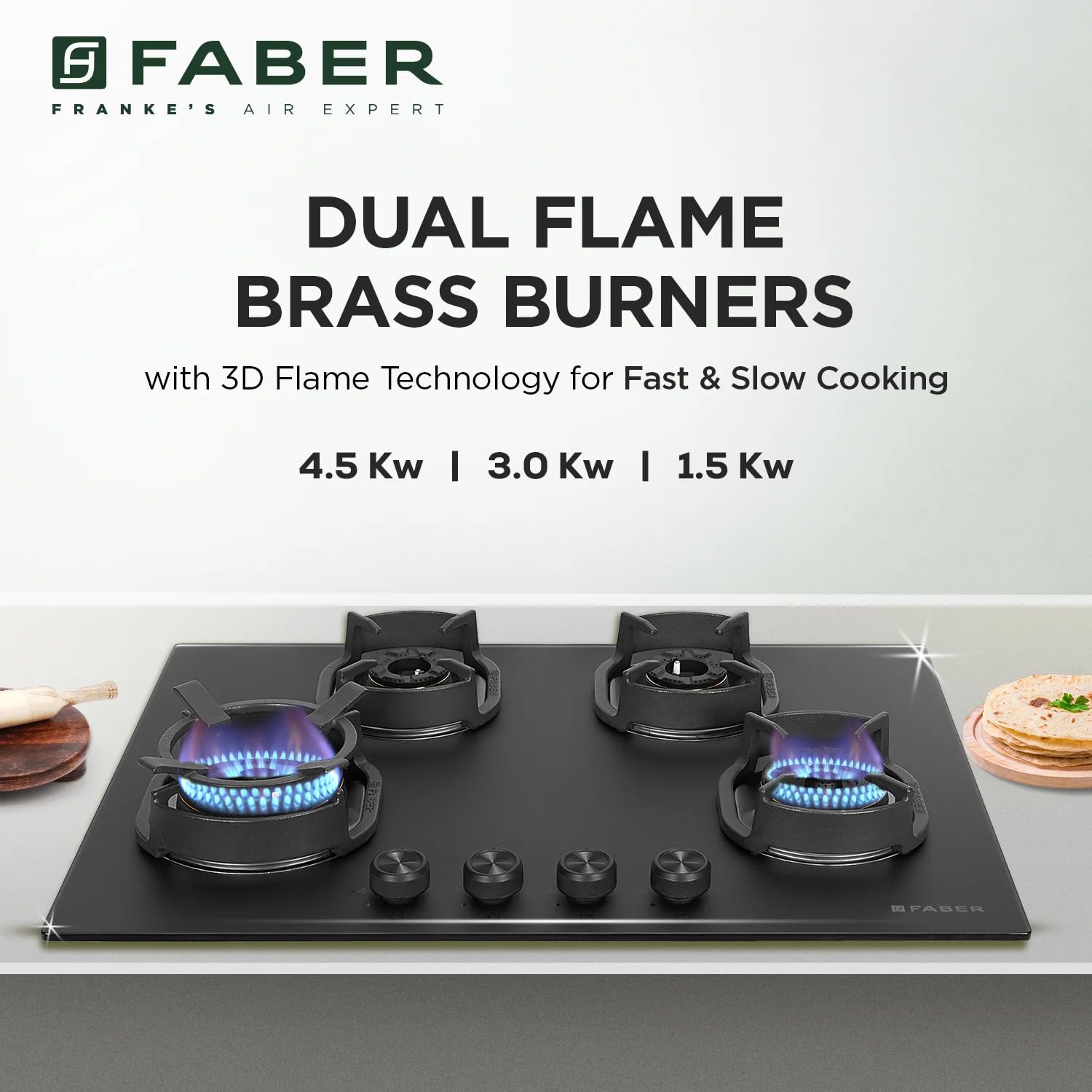 The 4-Burner Gas Hob/Cooktop is designed to offer high-performance cooking with a premium and modern look. Featuring a durable tempered glass surface, it enhances the aesthetics of your kitchen while ensuring easy cleaning and long-lasting durability. Its countertop installation and sleek design make it a perfect fit for contemporary kitchens, combining style with functionality.