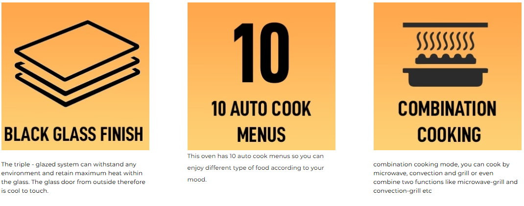 | Cooking Function | 10 auto cook menus - Defrost/Combination cooking/grill+convection |