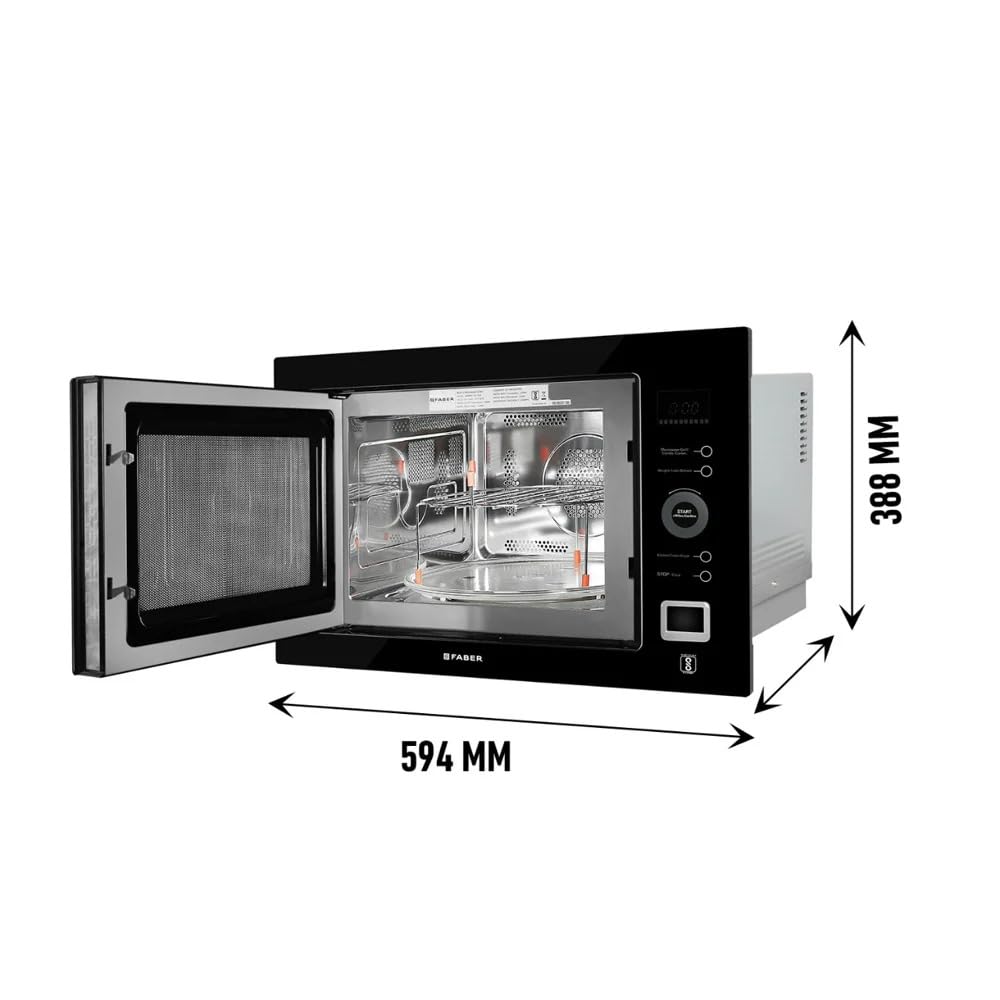 The Faber FBI MWO 25L CGS BK Built-In Microwave Oven is designed to bring convenience, efficiency, and style to modern kitchens. With its sleek black finish and built-in design, it integrates seamlessly into modular kitchen cabinets while saving valuable counter space. The spacious 25-litre capacity makes it ideal for everyday cooking, reheating, grilling, and baking needs of small to medium-sized families.