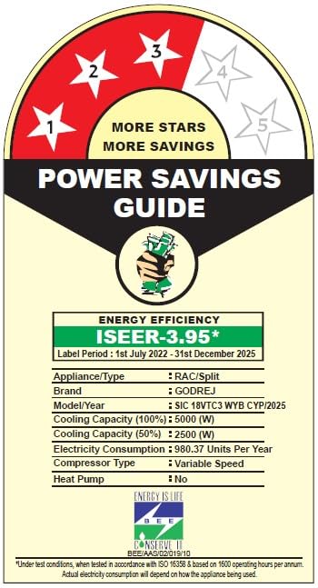| Indian Seasonal Energy Efficiency Ratio (ISEER) | 3.95 |