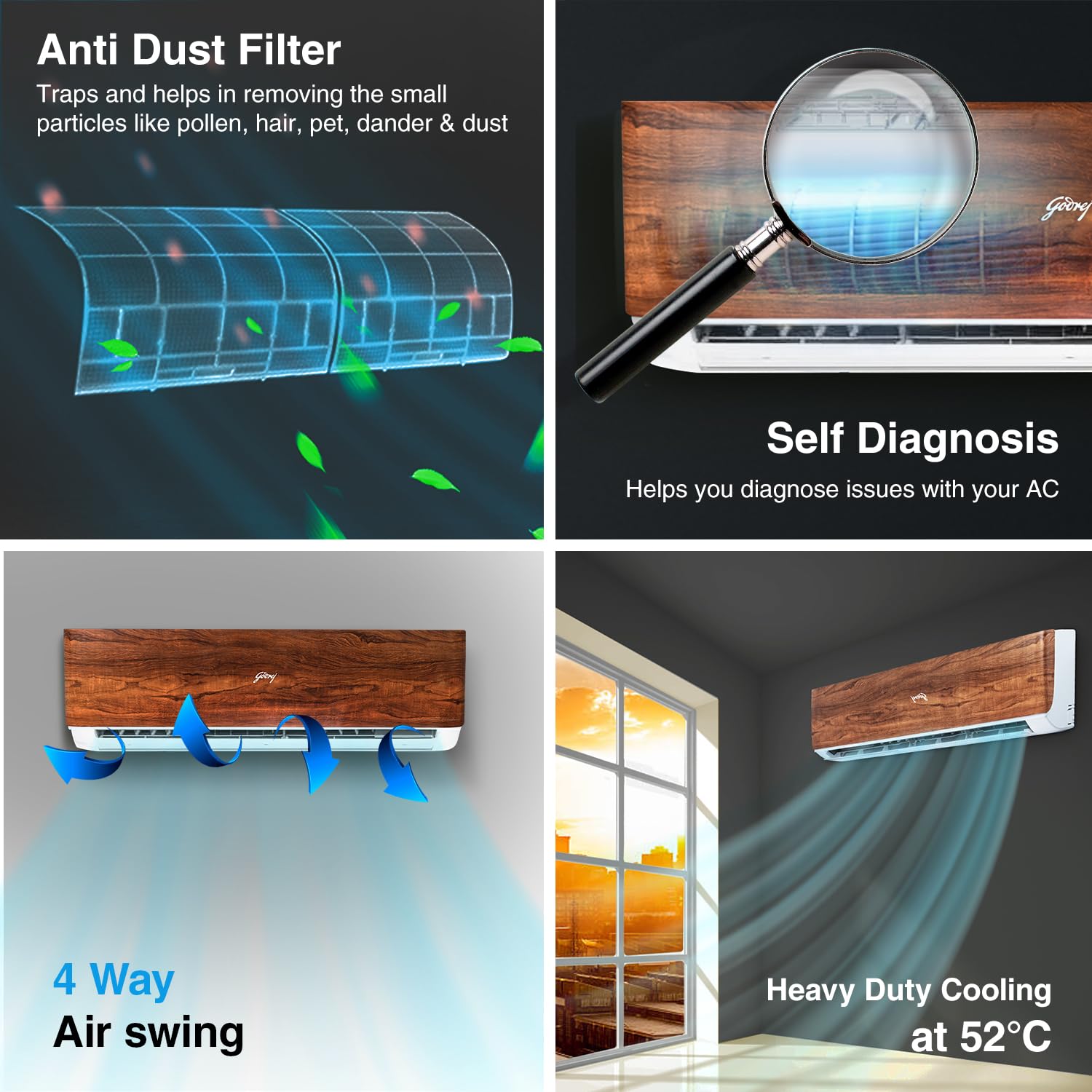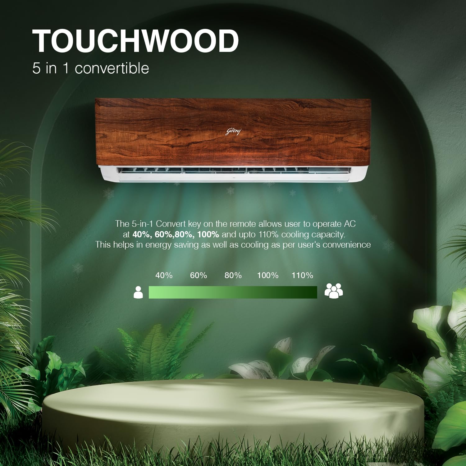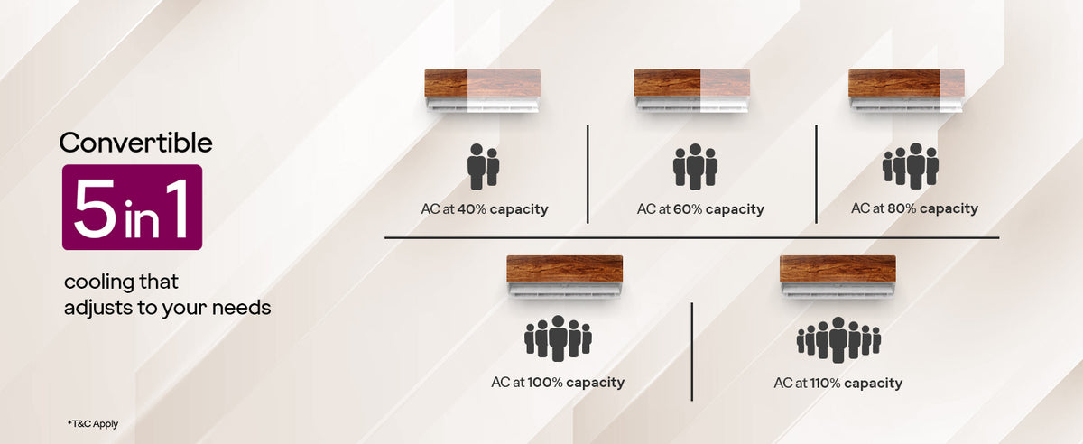 The AC 1.5T SIC 18VTC3 WYB / WYA TK split air conditioner from Godrej & Boyce Mfg. Co. Ltd. stands out with its stylish Teak Wood finish, blending cooling performance with décor-friendly design. This 1.5-ton 3-Star inverter AC offers 5-in-1 convertible cooling, letting you adjust capacity based on room conditions to manage energy use more efficiently. With a low 40 dB noise level, it provides comfortable cooling without disturbing your space.