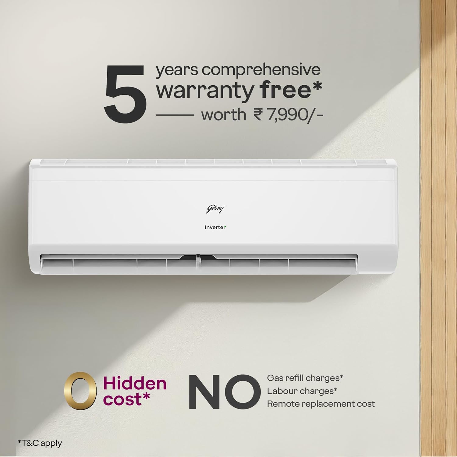 The AC 1.5T SIH 18ITC3 WYC split air conditioner from Godrej & Boyce Mfg. Co. Ltd. is a hot & cold inverter AC designed for year-round comfort. With 5-in-1 convertible cooling, you can adjust capacity depending on room load, helping manage energy consumption efficiently. Its quiet 36 dB operation makes it ideal for bedrooms, while the strong performance suits living spaces as well.