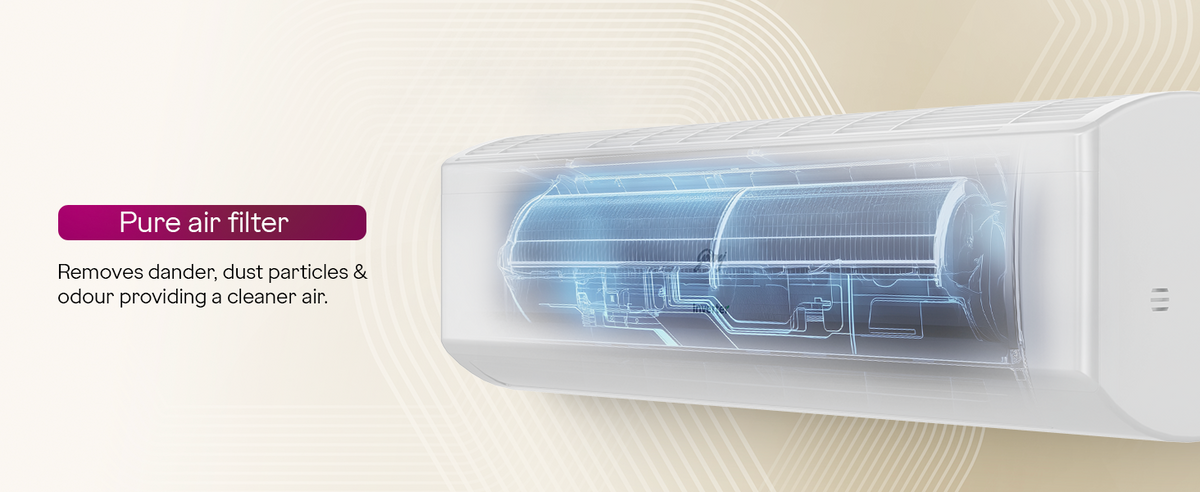 Maintenance and reliability features include Self Clean technology to reduce moisture buildup and Self Diagnosis for easier troubleshooting. The hot and cold function allows both cooling in summer and heating in winter. Running on 230V power with 1400 W consumption, it balances performance with efficiency, supported by an annual energy use of 905.41 kWh.