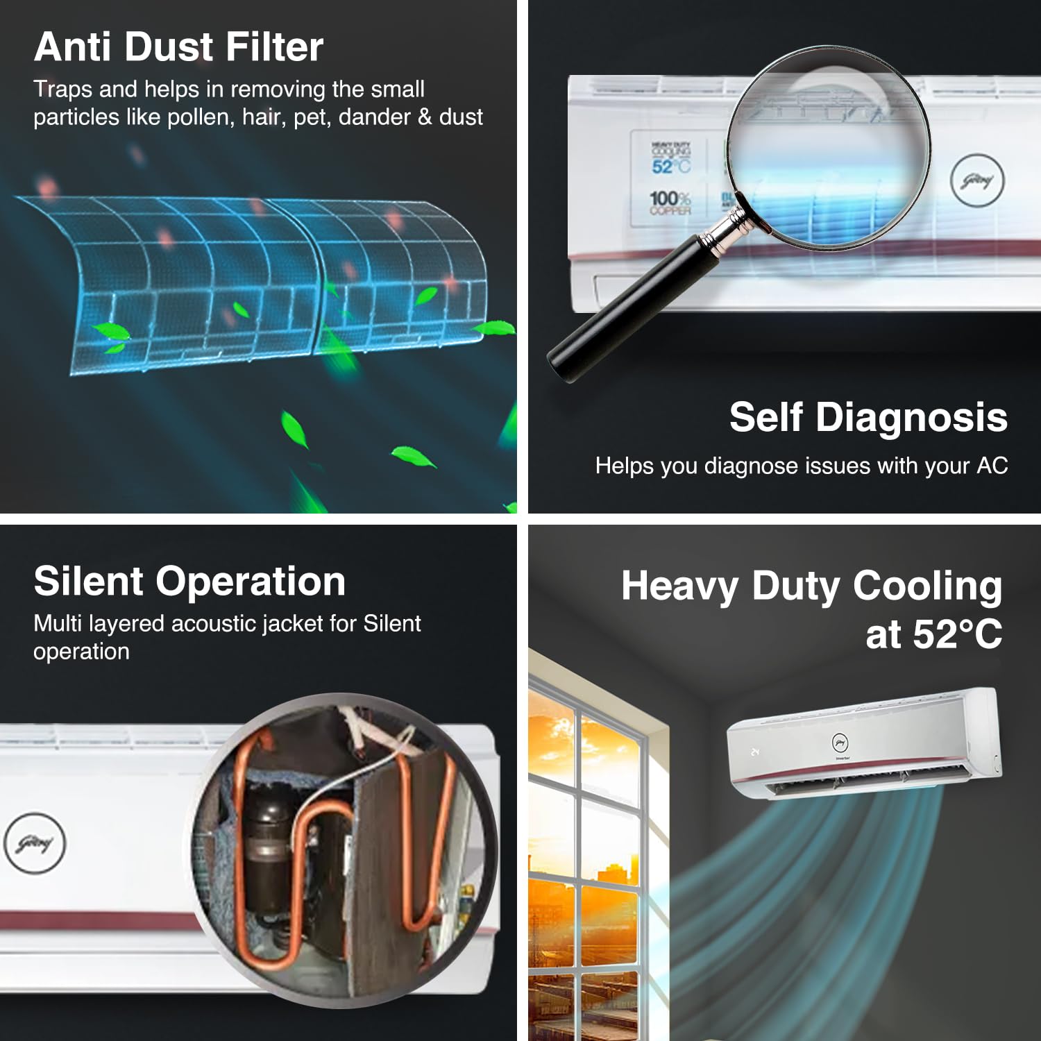 | Special Features | R32 green AC, Copper condenser with anticorrosive blue fins ,Hydrophilic blue fin evaporator, Dust filter |