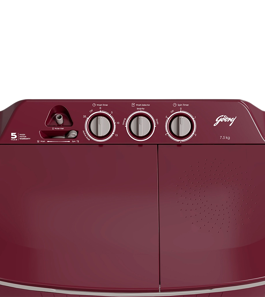The WSEDGE CLS 75 5.0 PRA MIGR semi-automatic top-loading washing machine from Godrej & Boyce Mfg. Co. Ltd. is a 7.5 kg capacity washer built for Indian homes that need durability and efficient daily performance. Its Mono Red finish and rugged, rust-proof body make it suitable for long-term use, even in humid conditions. Powered by a 370 W PowerMaxx wash motor, it delivers strong agitation for deep cleaning of everyday loads.