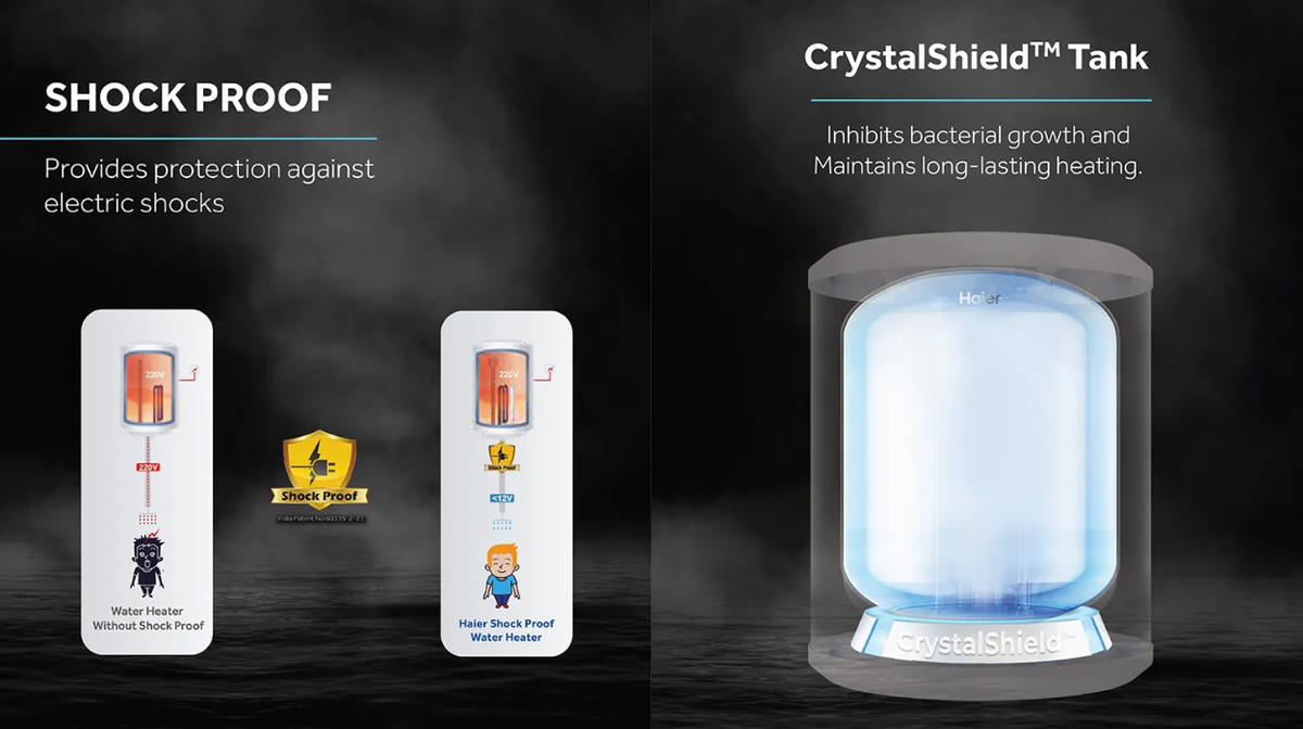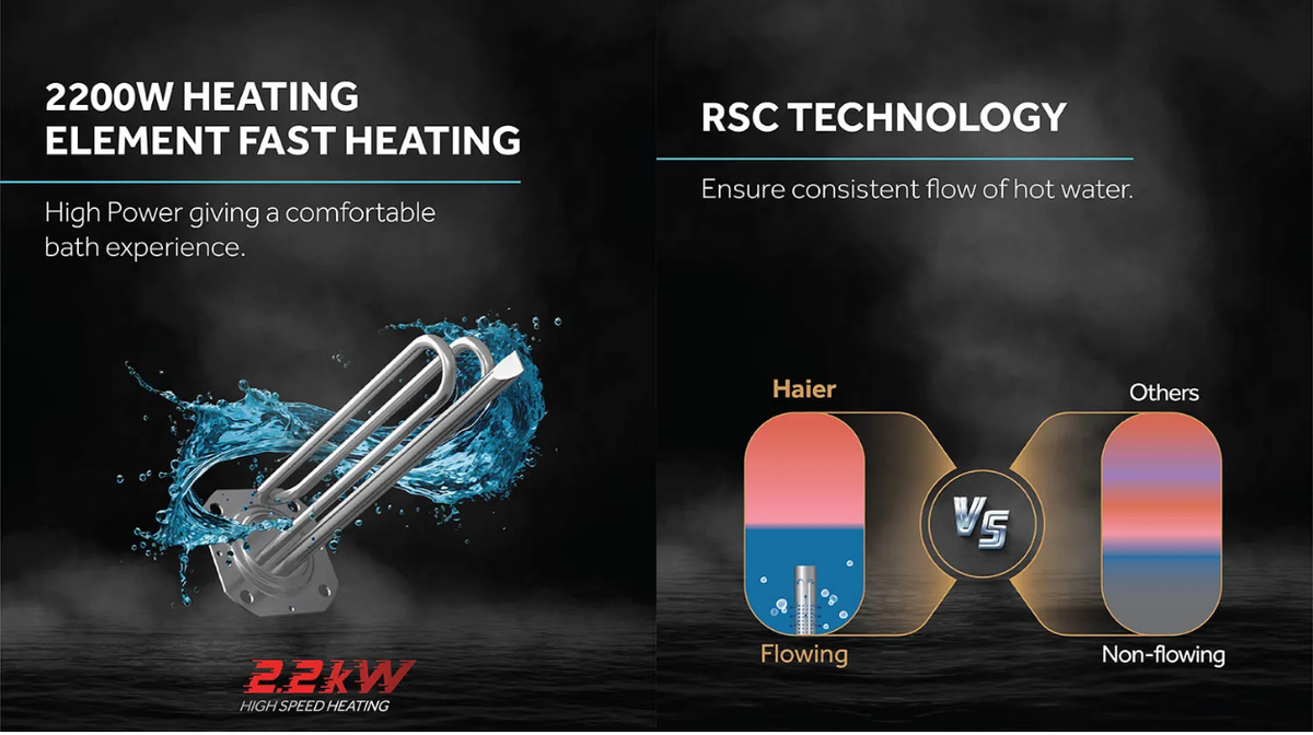 The Haier 15-Litre Vertical Storage Water Heater is designed to deliver powerful heating, advanced safety, and long-lasting performance for everyday home use. With a 5-Star BEE energy rating and 2200W heating power, it ensures fast and efficient hot water while minimizing electricity consumption. Built to withstand 8 bar pressure, it is ideal for high-rise apartments and consistent daily usage.