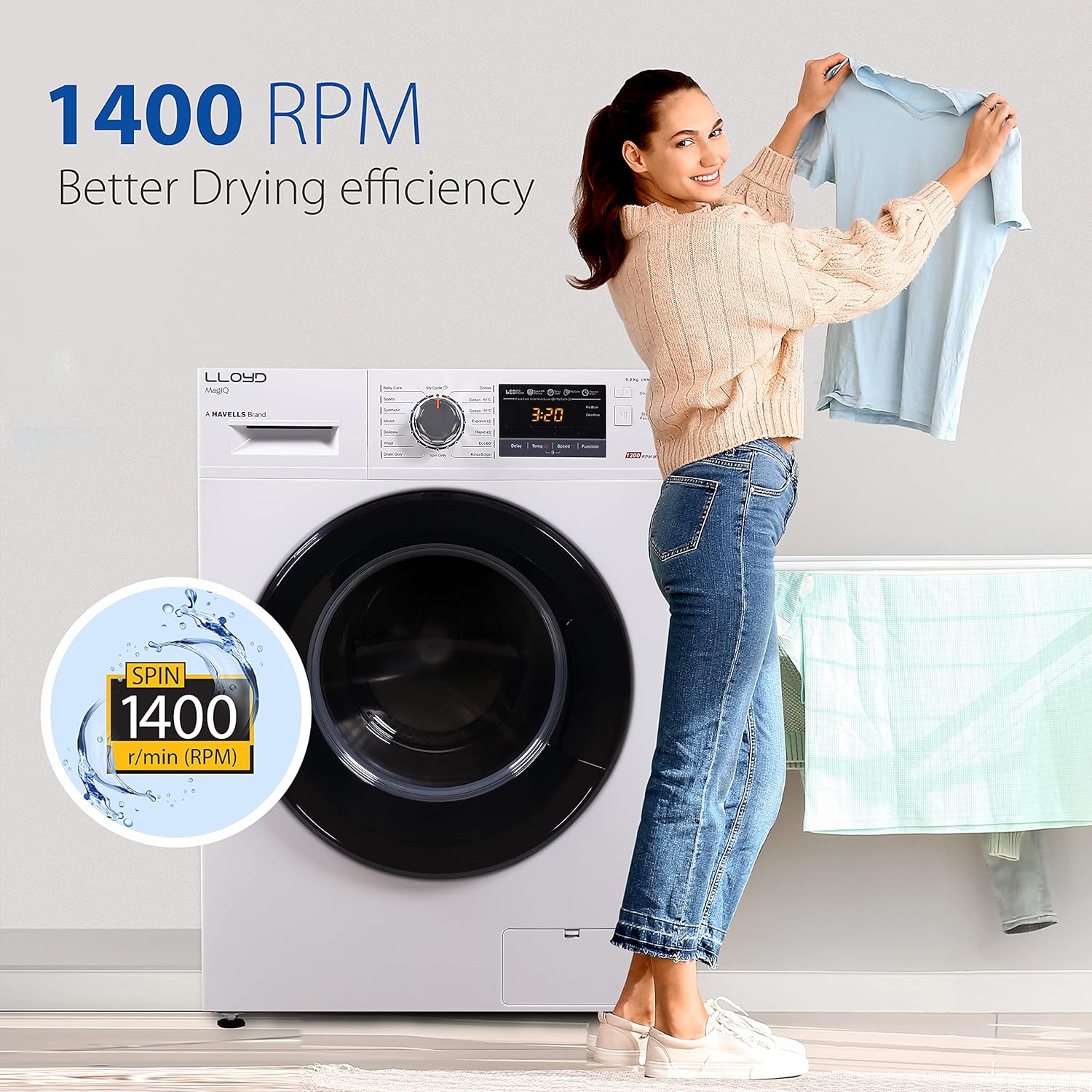 Havells-Lloyd 7 kg Fully Automatic Front load washing machine (GLWMF70WX3 White, 90° Self Clean)
