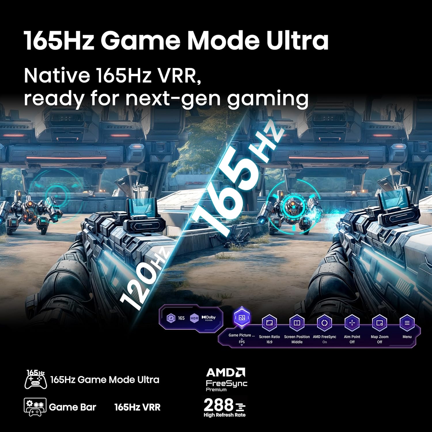 Performance is where this TV flexes hardest. With 165 Hz Game Mode Ultra, 6.5 ms response time, and motion tech like MEMC + AI Smooth Motion, fast scenes stay crisp and fluid. The Hi-View AI Engine Pro enhances lower-resolution content with intelligent upscaling and scene optimization. Audio is equally powerful thanks to 50W 2.1-channel speakers, a built-in subwoofer, and Dolby Atmos, giving you cinematic sound without an external system.