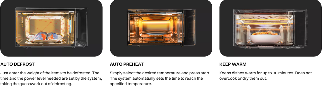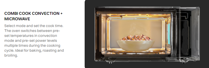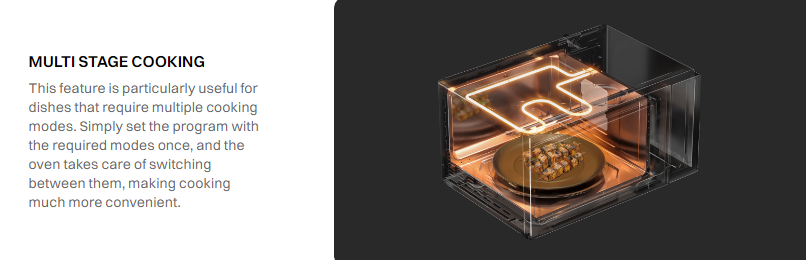 Built for hygiene and convenience, the microwave comes with Steam Clean, Disinfect, and Deodorizer functions to keep the cavity fresh and odour-free. Advanced options like multi-stage cooking, auto & weight defrost, grill mode, and yoghurt preparation make daily cooking effortless. Compact yet robust, it is backed by a 1-year comprehensive warranty, 3 years on magnetron & cavity, and 6 years spare parts support, offering long-term reliability and peace of mind.