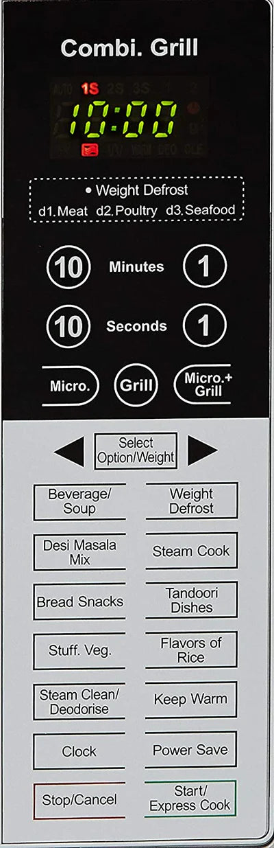 Built for hygiene and ease of use, this microwave features Steam Clean and Deodorizer functions to keep the cavity fresh and odour-free. The touch keypad control, express cooking, and multi-stage cooking options ensure smooth and efficient operation. Compact yet powerful, it is backed by a 1-year comprehensive warranty, 3 years on magnetron & cavity, and 6 years spare parts support, offering long-term reliability and peace of mind.