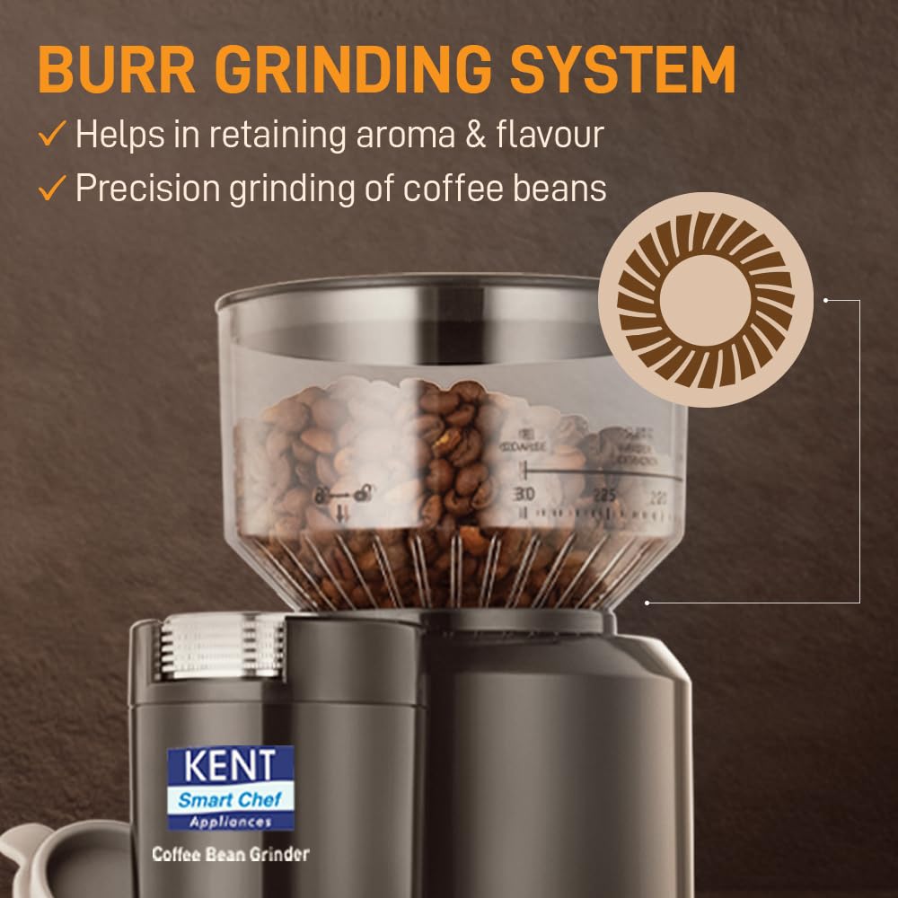 The KENT Coffee Bean Grinder (Black) is designed for coffee lovers who want fresh, flavourful brews at home. Equipped with a burr grinding system, it preserves the natural aroma and taste of coffee beans by grinding them evenly instead of crushing them like blade grinders. Its compact, modern design fits easily into kitchen spaces while delivering consistent performance.