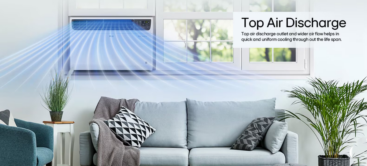 Designed for convenience, this window AC includes a 4-way swing airflow system that distributes cool air evenly across the room. A Filter Light Reminder alerts you when it’s time to clean the filter, helping maintain air quality and performance. With durable ABS/HIPS construction and easy remote operation, this LG window AC delivers reliable cooling and everyday comfort.