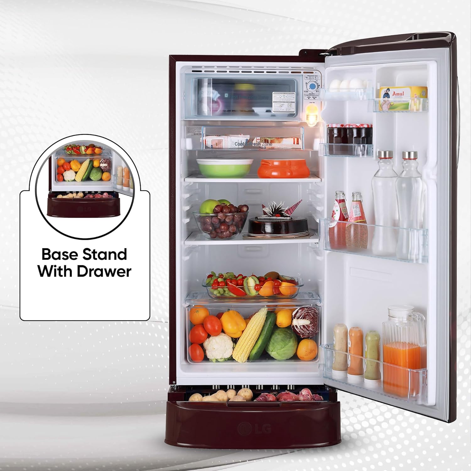 | Additional Features | Smart Inverter Compressor, Smart Connect, Works Without Stabilizer: (90~310V), Base Stand Drawer, Anti-Bacterial Gasket |