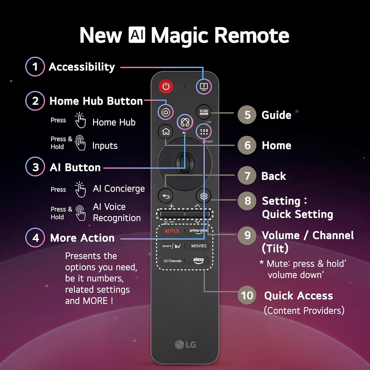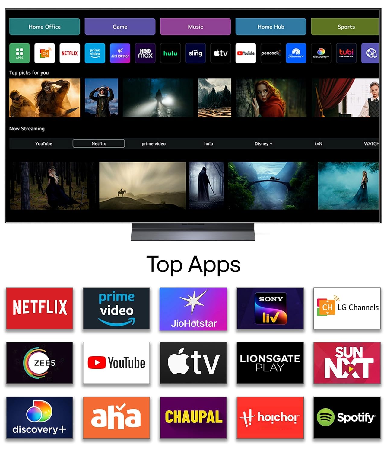 Built for both entertainment and gaming, the TV features a 120Hz native refresh rate with VRR up to 144Hz, along with NVIDIA G-Sync and AMD FreeSync compatibility, delivering ultra-smooth gameplay with minimal lag. The webOS 25 smart platform provides seamless access to apps, voice control, and smart home integration. Complementing the visuals, the 40W 2.2-channel audio system with Dolby Atmos and AI Sound Pro creates an immersive surround-like audio experience.