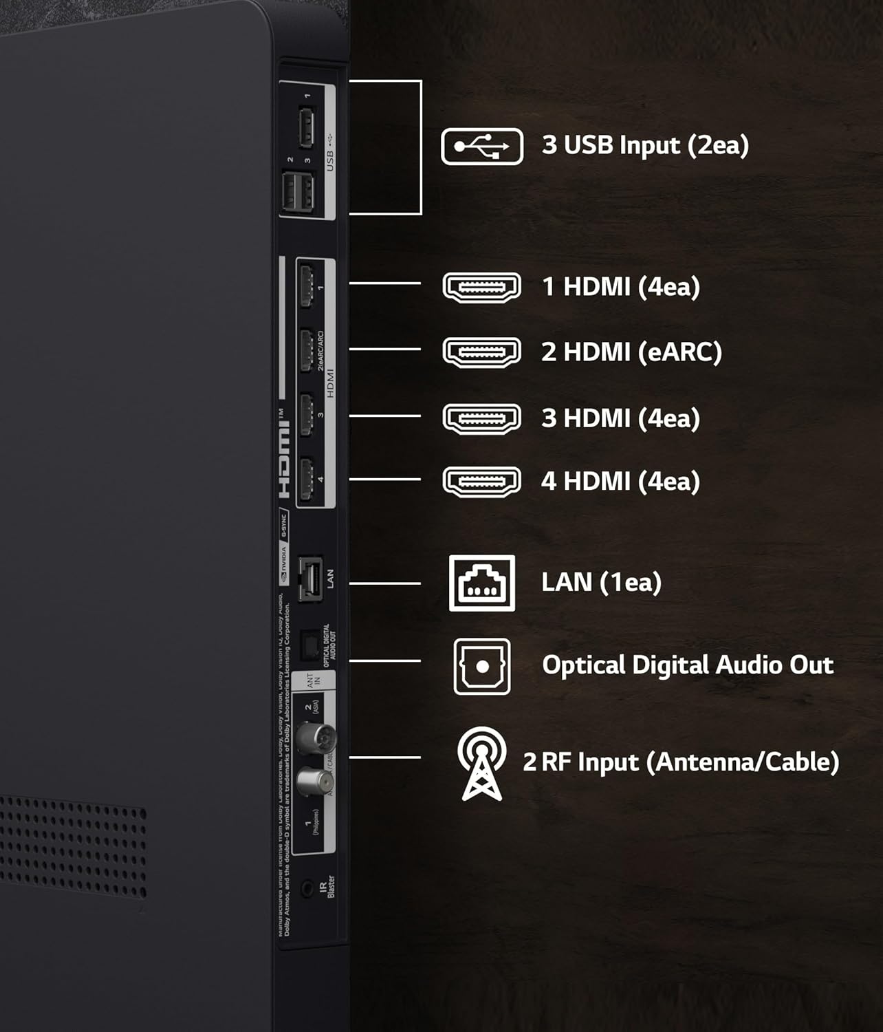 | HDMI Input | 4ea (supports 4K 120Hz, eARC, VRR, ALLM, QMS (4 port)) |