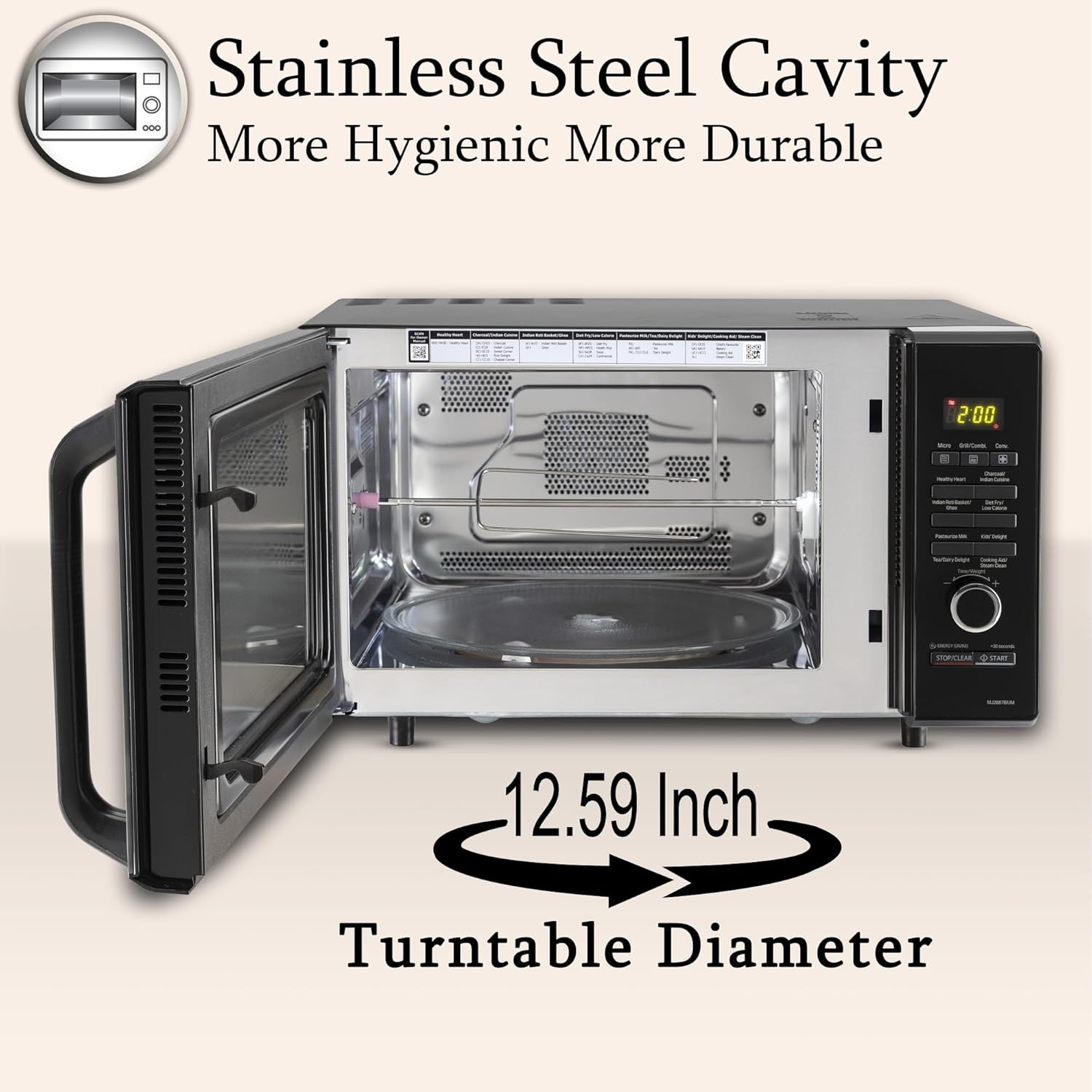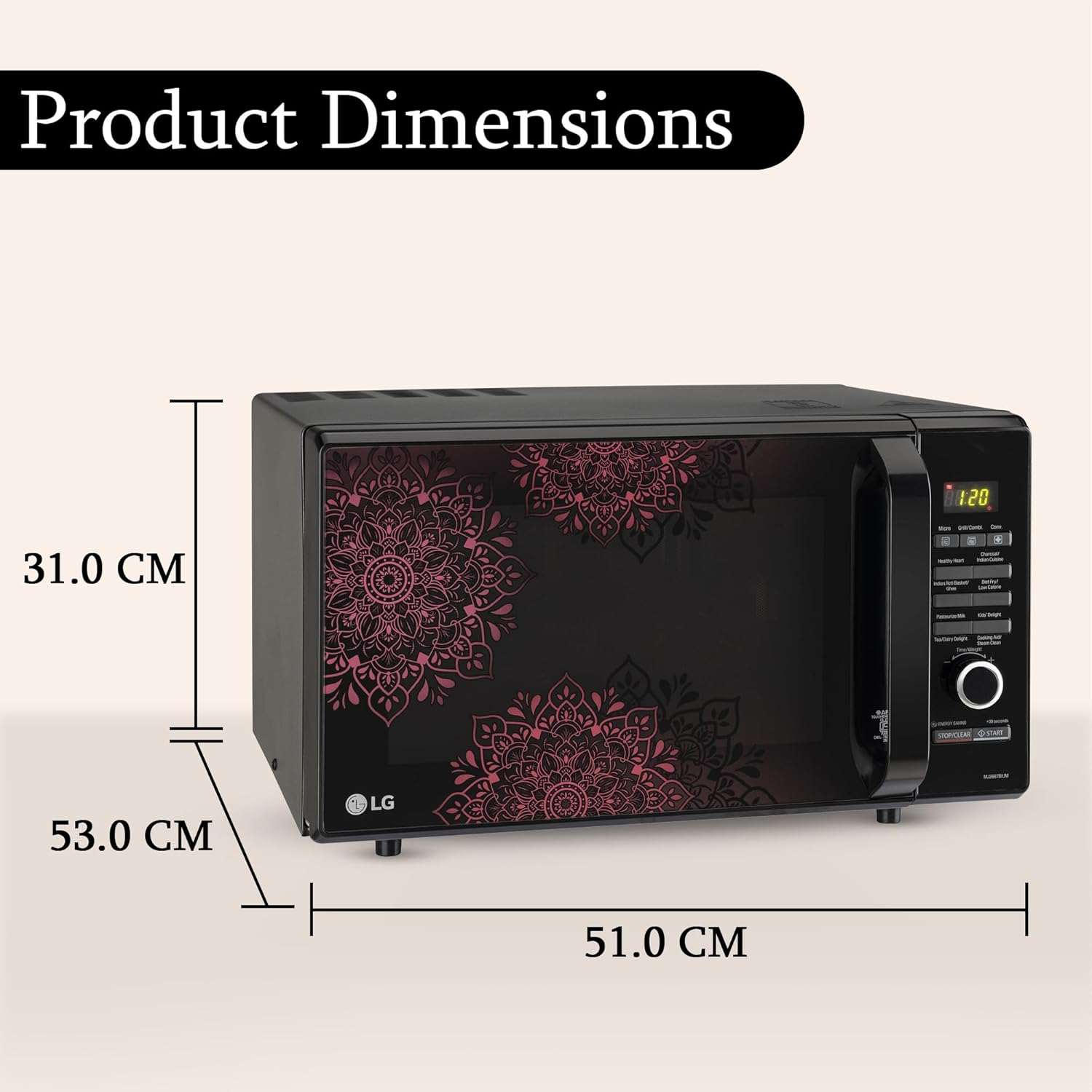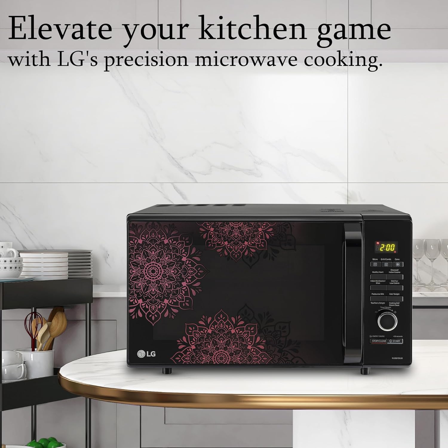 LG 28 L Charcoal Convection Healthy Microwave Oven (MJ2887BIUM, Black, Healthy Heart Recipes, Diet Fry, Pasteurized Milk, 360° Motorised Rotisserie & 10 Years of warranty on Charcoal Heater)